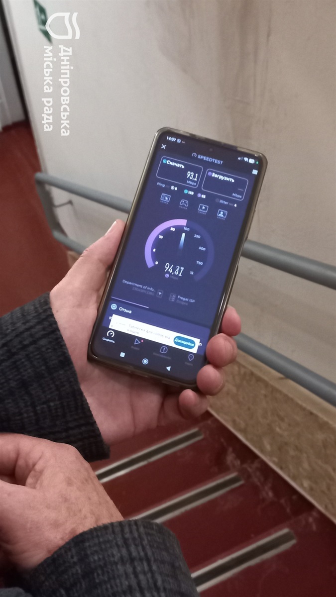 Перевірив роботу інтернету в укриттях згаданих закладів дошкільної освіти, якість сигналу та стабільність підключення заступник директора КП «ІНФО-РАДА-ДНІПРО» Дмитро Цимиренко. Він 18 квітня чергує містом.
