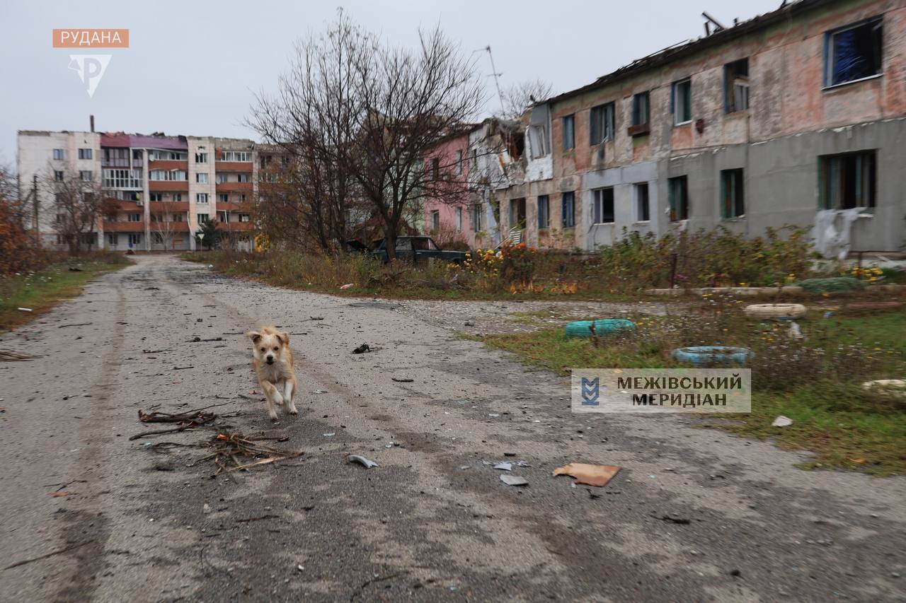Колись тут жили 7 тисяч мешканців, тепер поміж вирв блукають безпритульні собаки, довкола розкидані речі, які не змогли чи не встигли взяти з собою евакуйовані люди.