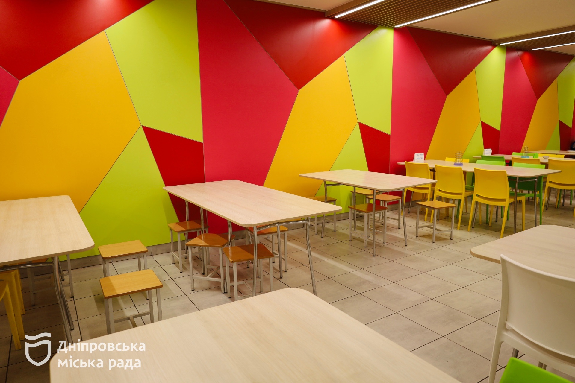 Для того щоб дітям, особливо молодшим школярам, було комфортніше перебувати під час тривалих тривог, приміщення укриттів розписали яскравими малюнками та встановили телевізор.