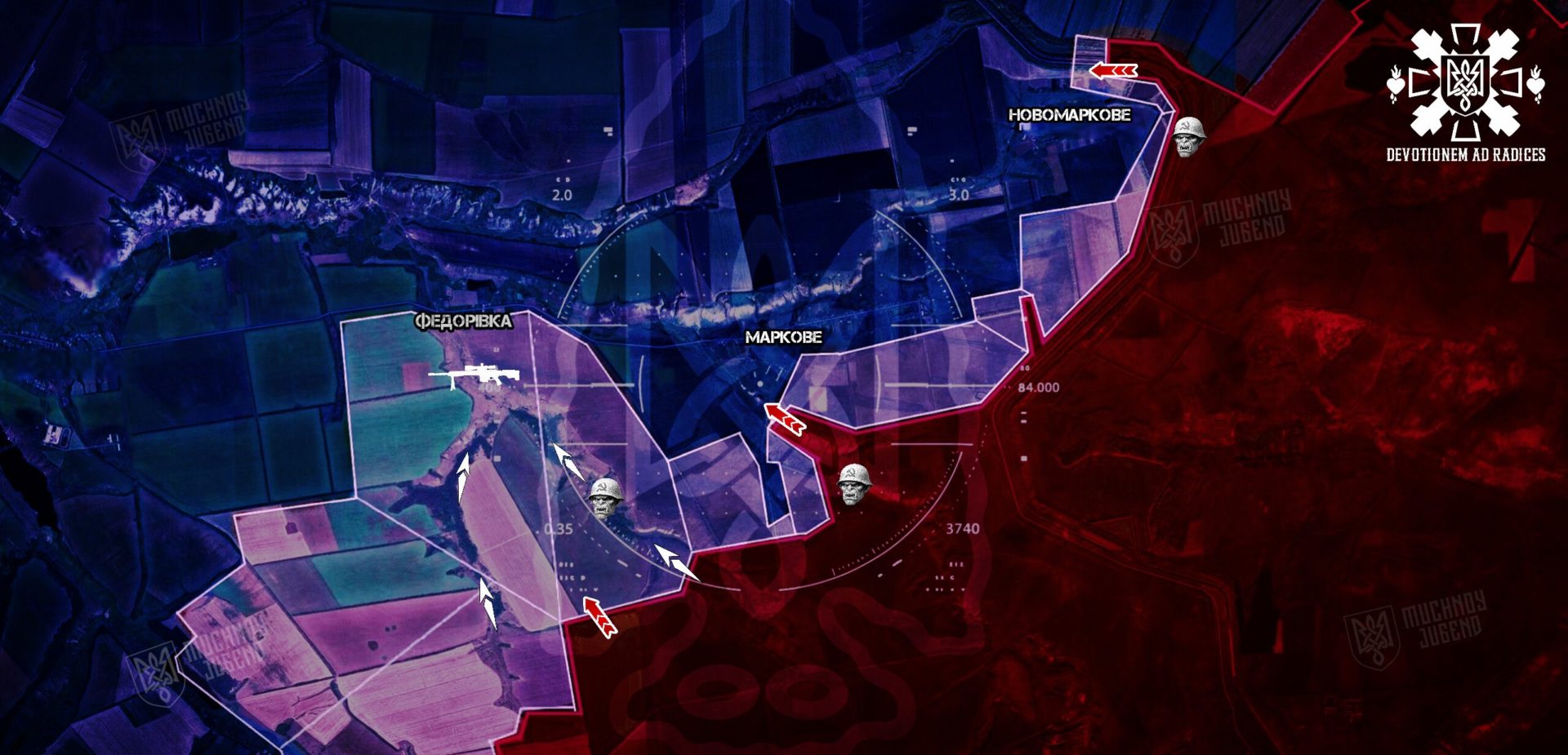 Окремо відзначається активність у балці в напрямку фермерських угідь на південь від Маркового. Це виглядає як підготовчий етап до подальшого тиску з метою захоплення села та розширення плацдарму для наступних дій. Противник уникає прямих лобових атак, намагаючись максимально використати особливості місцевості та природне укриття.