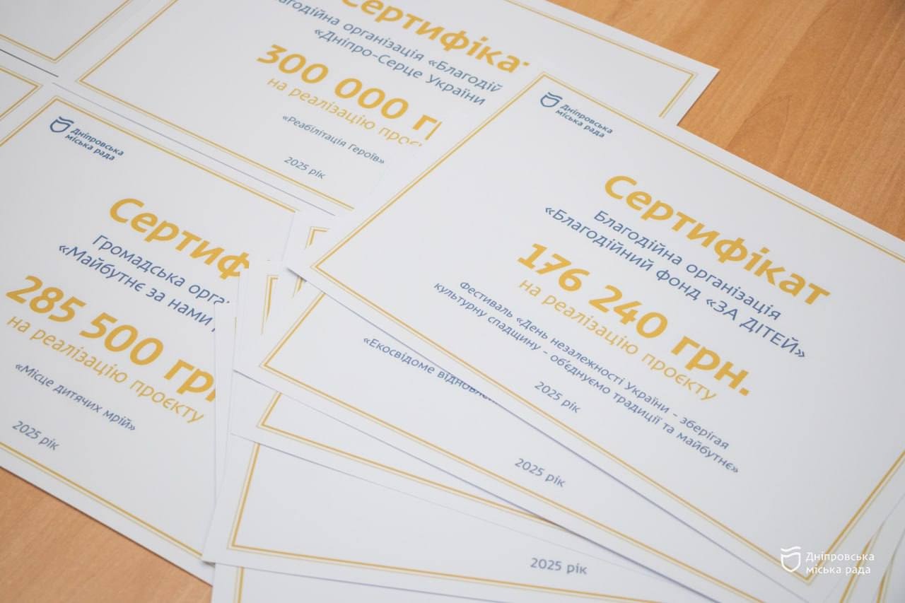 У Дніпрі відзначили переможців другого етапу конкурсу щодо надання фінансової підтримки з бюджету міської територіальної громади. Запрошеним вручили відповідні сертифікати. Цього року на другий етап конкурсу громадських об’єднань, впровадженого за підтримки міського голови Бориса Філатова, було подано 17 проєктів, із яких перемогли 12. З міського бюджету на їхнє фінансування у межах муніципальної програми розвитку місцевого самоврядування на 2021-2025 роки виділено 2,5 млн грн.