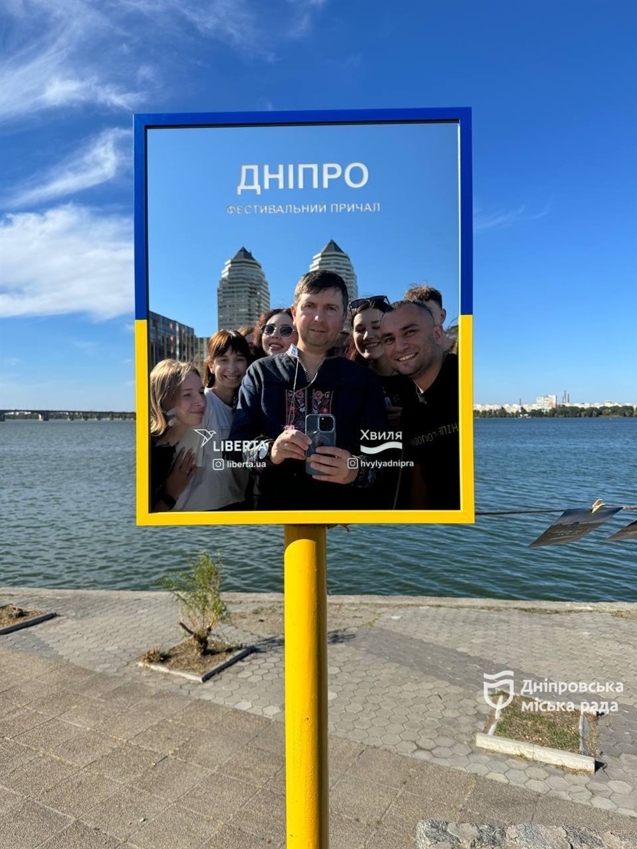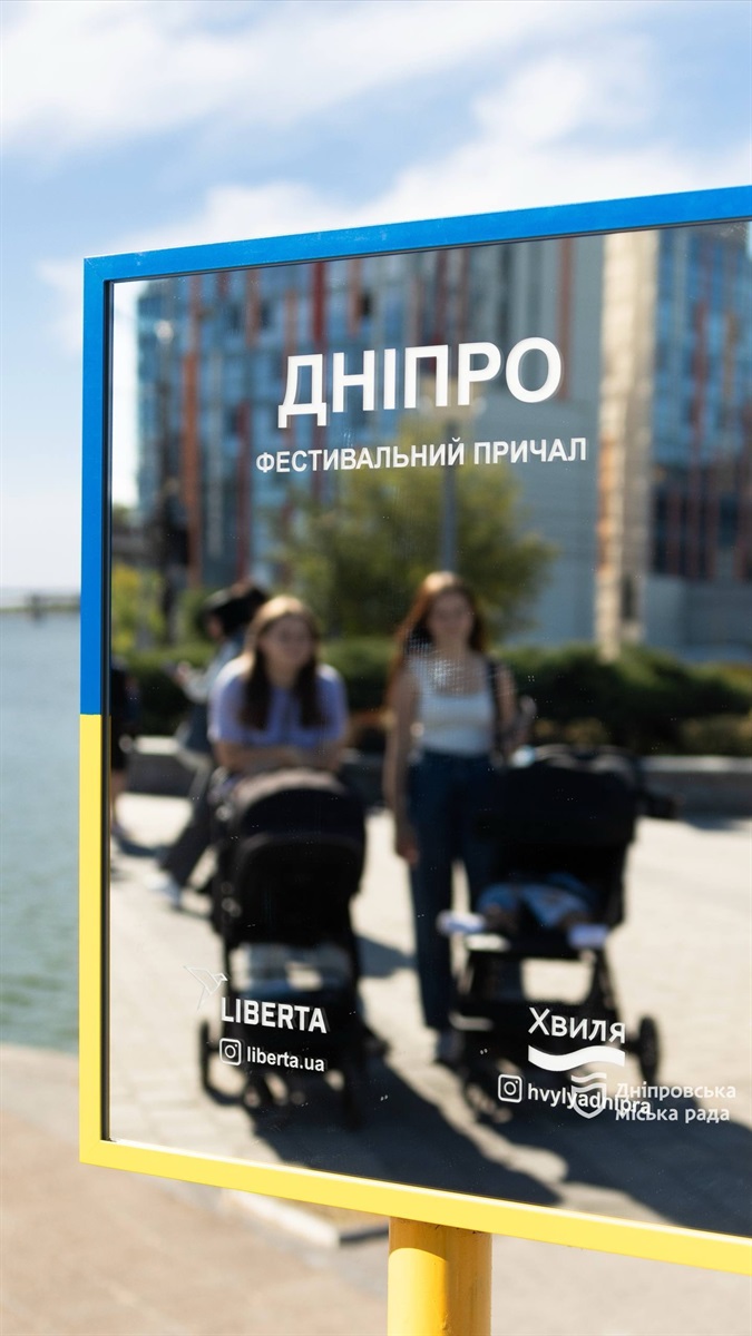 До дня Міста у Дніпрі на Фестивальному причалі 13 вересня з’явився новий арт-об’єкт — велике дзеркало з гравіюванням «Дніпро». Його створила компанія «Liberta» відома своїми дзеркалами по всій Україні. Ініціатором проєкту стала молодіжна мережа «Хвиля».