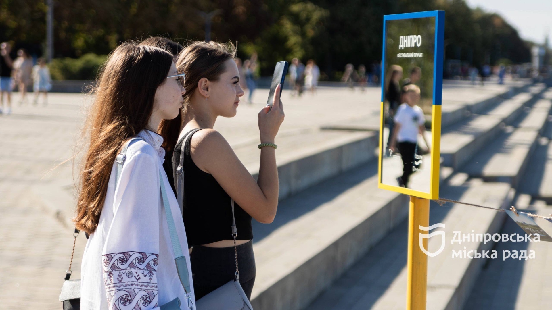 «Такі арт-об’єкти створюють атмосферу свята, додають місту емоційності», – дніпрянка про встановлення дзеркала на набережній Дніпра