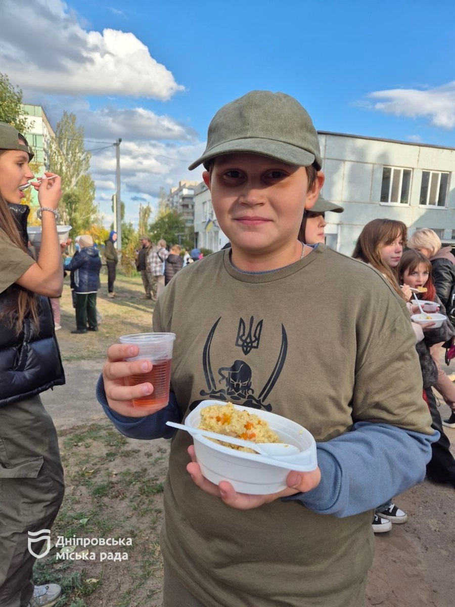 У комунальному закладі позашкільної освіти «Дитячо-молодіжний центр «Творчі»» Дніпровської міськради куліш готували просто неба у великому казані на відкритому вогнищі. Скуштувати традиційну страву та ароматний узвар міг кожен охочий. А ще на території діяли різноманітні тематичні локації: ярмарок українських сувенірів на підтримку захисників ЗСУ, зона плетіння маскувальних сіток, майстер-клас із розпису дерев’яної ложки, показові виступи вихованців позашкільних закладів освіти, а також демонстрація збирання та розбирання автомата Калашникова. Була і концертно-розважальна програма, конкурси та фотозона. Захід зібрав 250 гостей.
