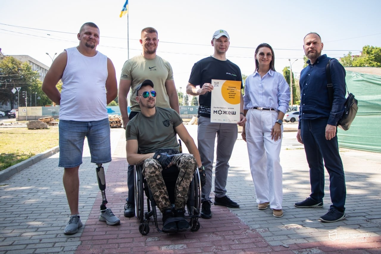 «Початок щодо облаштування безбар’єрних доріжок у Дніпрі покладено. Упевнений, що з часом Дніпро стане повністю безбар’єрним і всім особам з інвалідністю, літнім людям та родинам з дитячими візочками буде комфортно пересуватися», — каже ветеран, амбасадор проєкту «Рух без бар’єрів» Тимофій Мишаков.