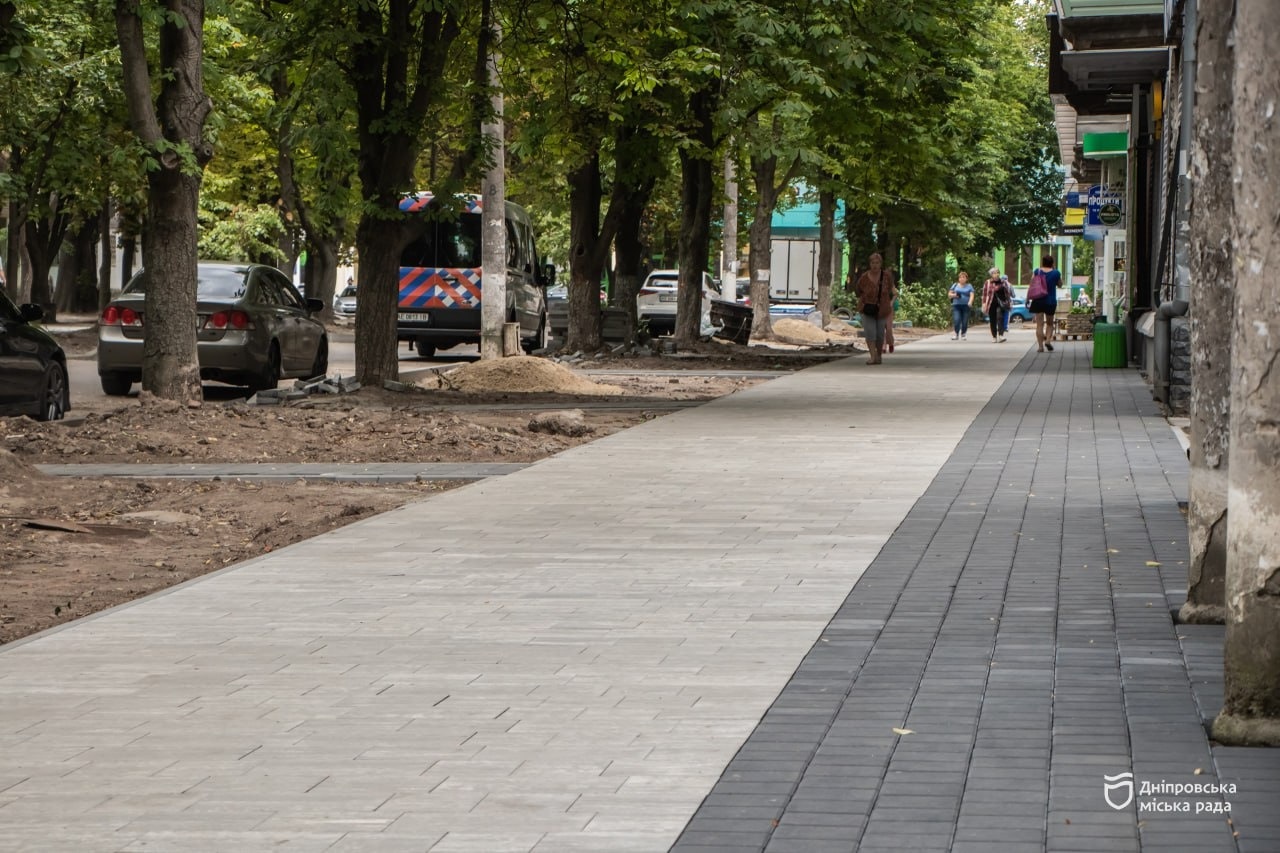 У Дніпрі завершують поточний ремонт вулиці Дениса Котенка. Роботи стартували у травні. Тоді комунальники демонтували старе покриття на пішохідній частині та розпочали укладання нової тротуарної плитки. Крім того, під час ремонту дотримувались принципу безбар’єрності.