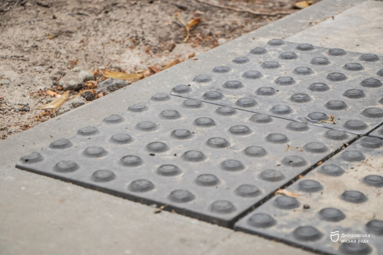 «Першочерговим нашим завданням було зробити цю вулицю інклюзивною, а вже потім красивою. Тому всі пішохідні переходи у нас в один рівень з проїзною частиною. Також ми використали декілька видів тактильної плитки, яка улаштована перед кожним проїздом у двір та у місцях, де машина переїжджає та перетинає рух пішоходів в обох напрямках», — зазначив заступник директора департаменту благоустрою та інфраструктури Дніпровської міської ради Дмитро Коробов.