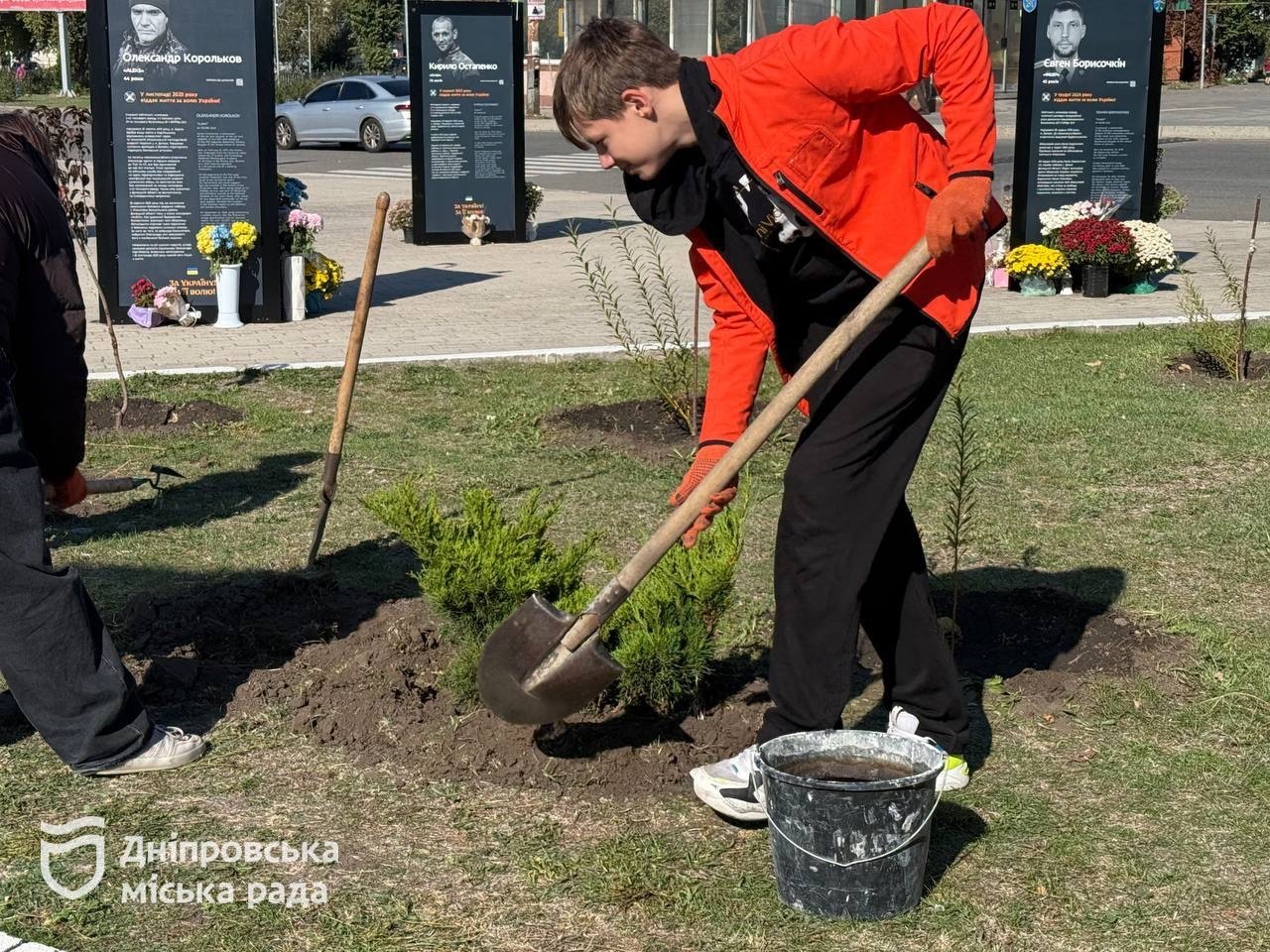 Учень ліцею №141 Ігор каже: «Сьогодні прийшов вперше зі своїми однокласниками. Ми хочемо облагородити територію, озеленити її та вшанувати пам’ять наших героїв. Це дуже важливо, це наша пам’ять і повага до їхнього подвигу».