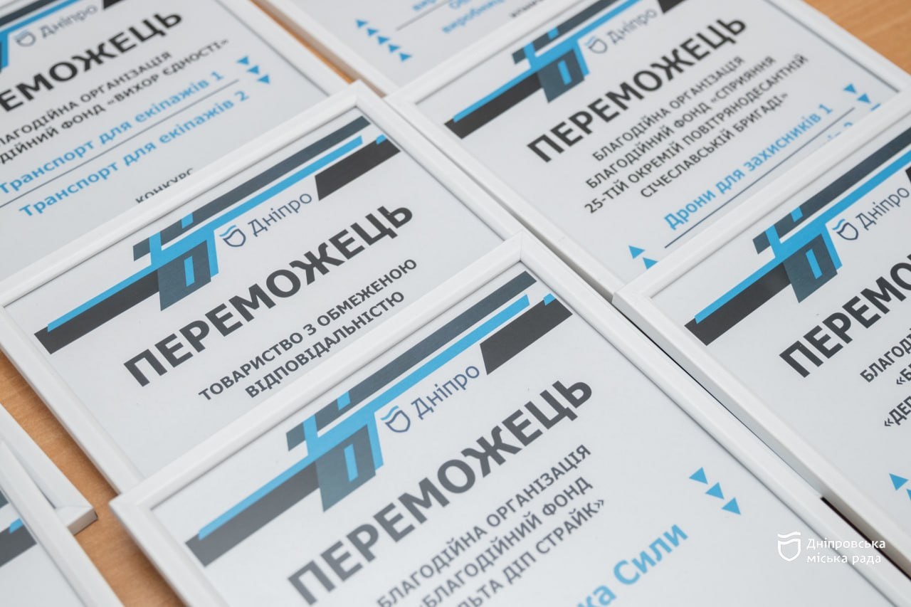 У Дніпровській міській раді вручили дипломи переможцям чергового V етапу конкурсу щодо співфінансування проєктів на підтримку сил безпеки й оборони України. Цього разу у конкурсі перемогли 14 проєктів, які подали на участь. Загальна вартість проєктів-переможців — 26,8 млн грн, з яких 6,9 млн грн — це власний внесок учасників, а 19,9 млн грн – внесок з бюджету територіальної громади у межах співфінансування.