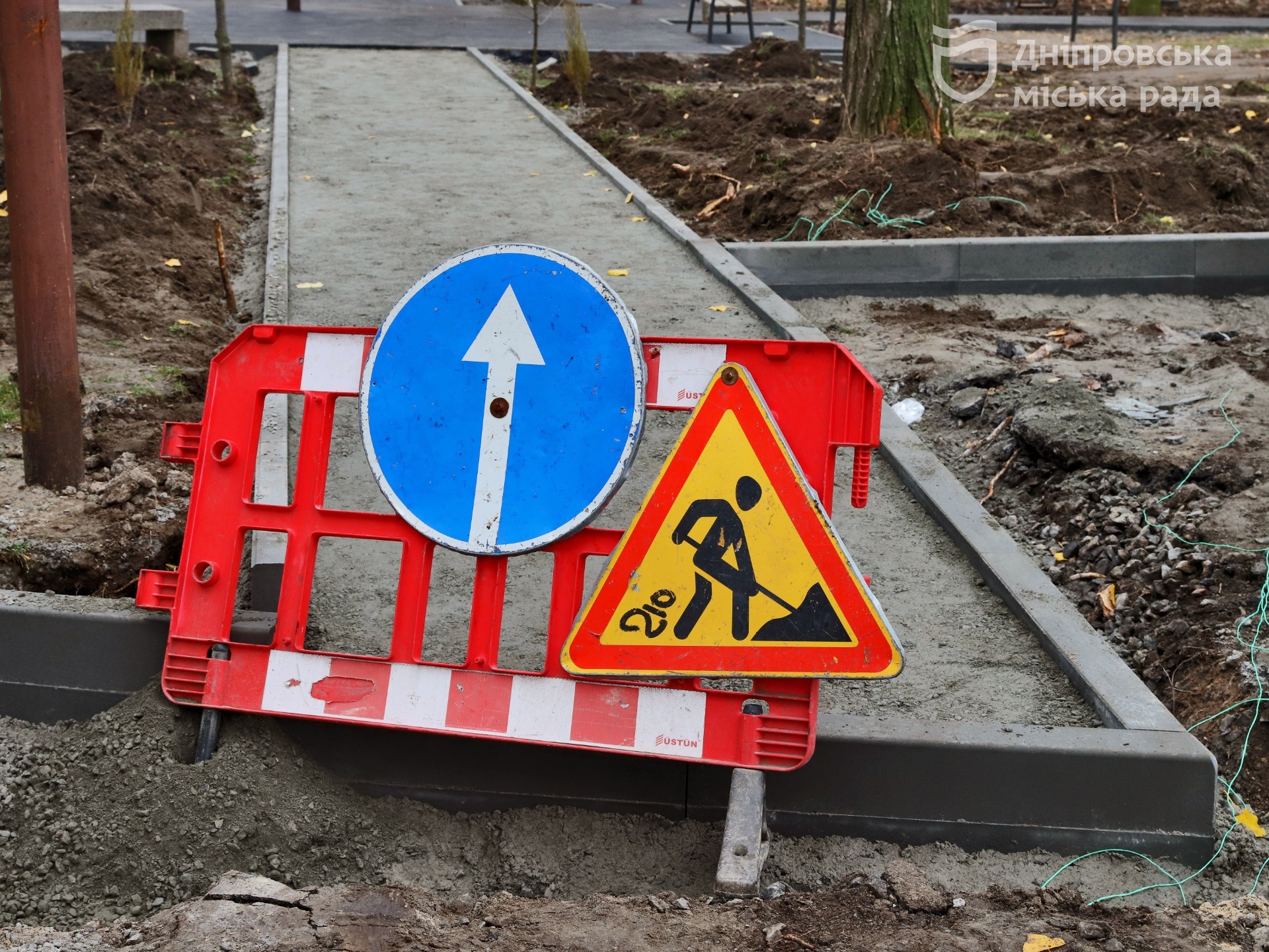 У дворі 118-го будинку на Набережній Перемоги, який місто відновило після влучання російської ракети, триває комплексна реконструкція. Там ремонтують внутрішньоквартальні дороги і тротуари, на стан яких раніше жалілися місцеві мешканці.