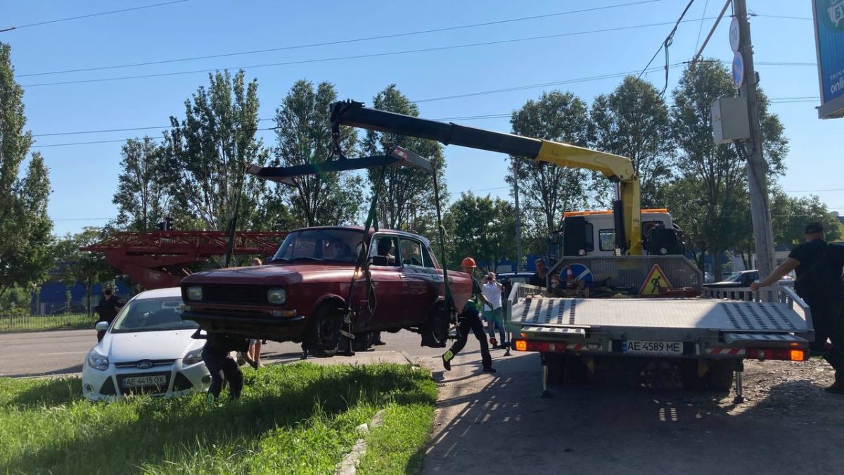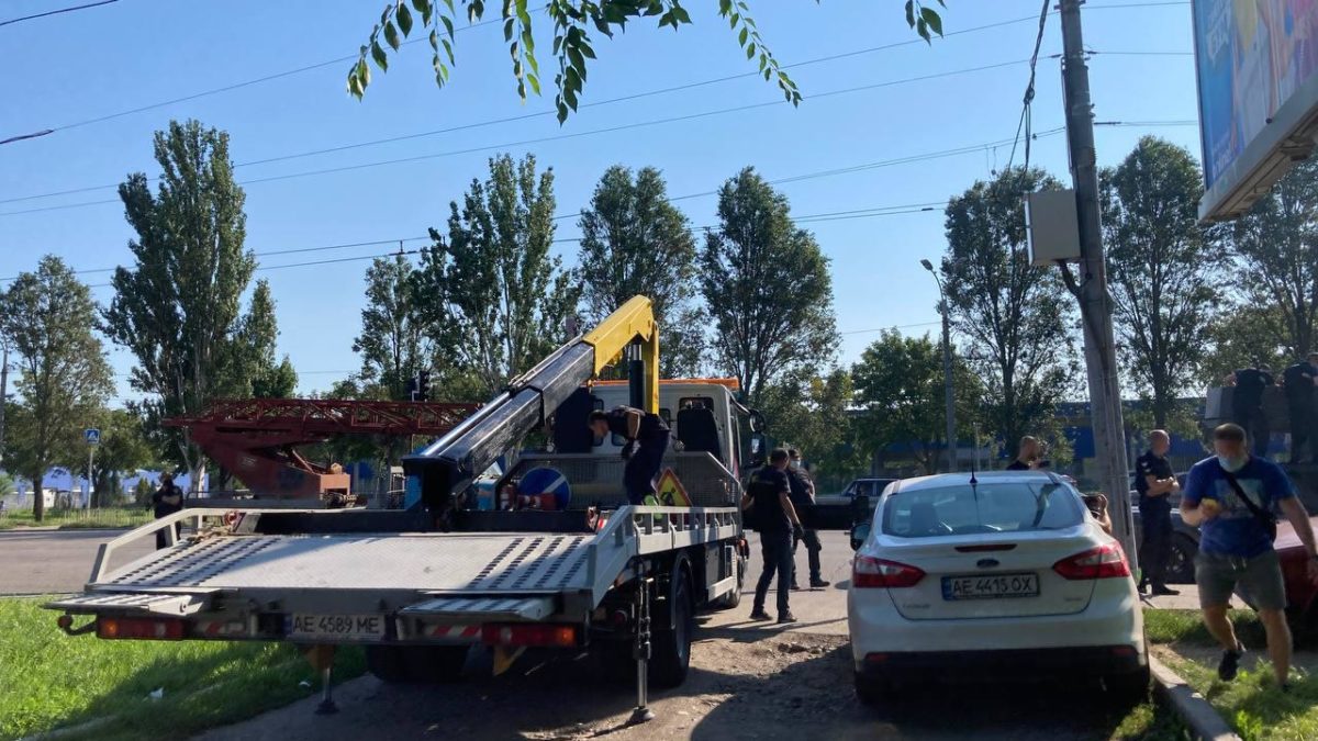 На перехресті Запорізького шосе та вулиці Космічної. Ймовірні представники партії “Громадська сила” Загіда Краснова не покидають автівку та перешкоджають, аби її евакуювали. Муніципальна варта проводить з ними бесіду. Тим часом на місці події починають евакуацію легковика разом з людиною всередині. В той момент чоловік всередині автівки починає викручувати колеса та блокує евакуацію.