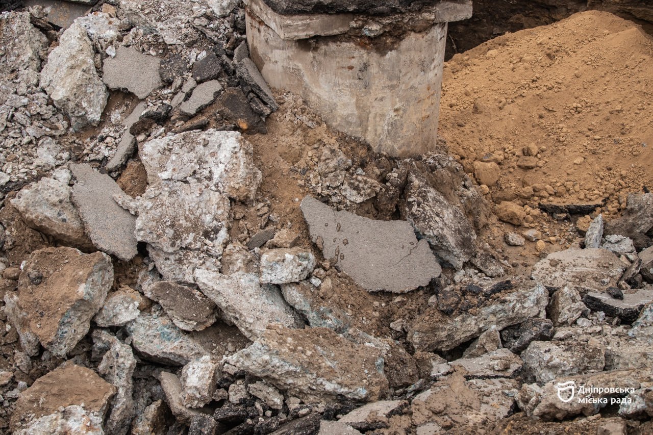За словами начальника інспекції з контролю за ремонтами КП «Дніпроводоканал» Сергія Ченчевича, було виявлено пошкодження магістрального водоводу діаметром 600 мм, що проходить під проїзною частиною вул. Пастера.