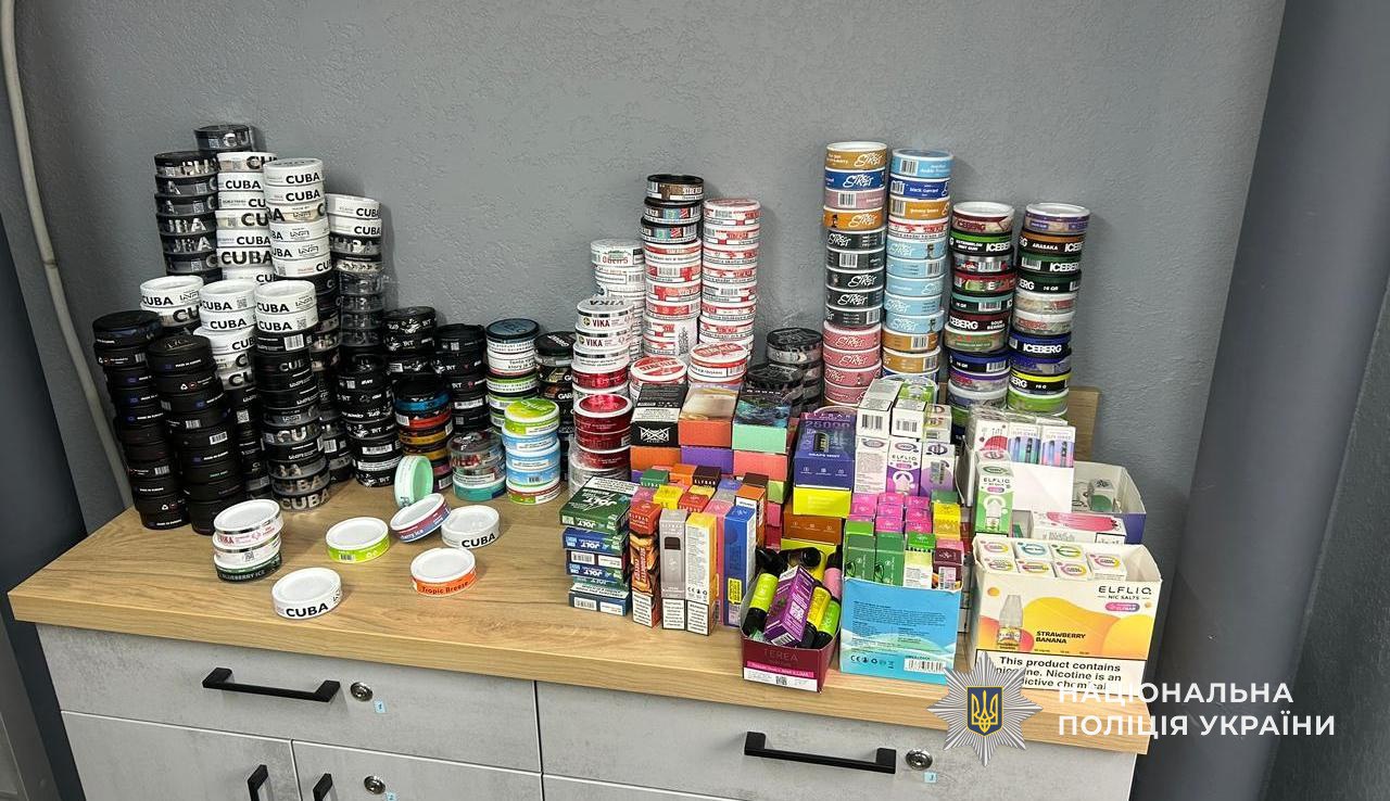 6 березня у точках продажу нелегальної продукції та у складських приміщеннях відбулися 8 обшуків. Під час слідчих заходів правоохоронці вилучили майже тисячу одиниць електронних пристроїв для паління, понад 11 тисяч нікотинових паучів та 13 тисяч ємностей із рідинами для електронних сигарет.