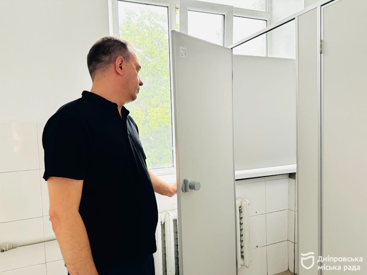 Перевірив черговий по місту якість виконаних робіт у санвузлах і у гімназії № 85. Там про оновлення кабінок просили і учні, і їхні батьки.
