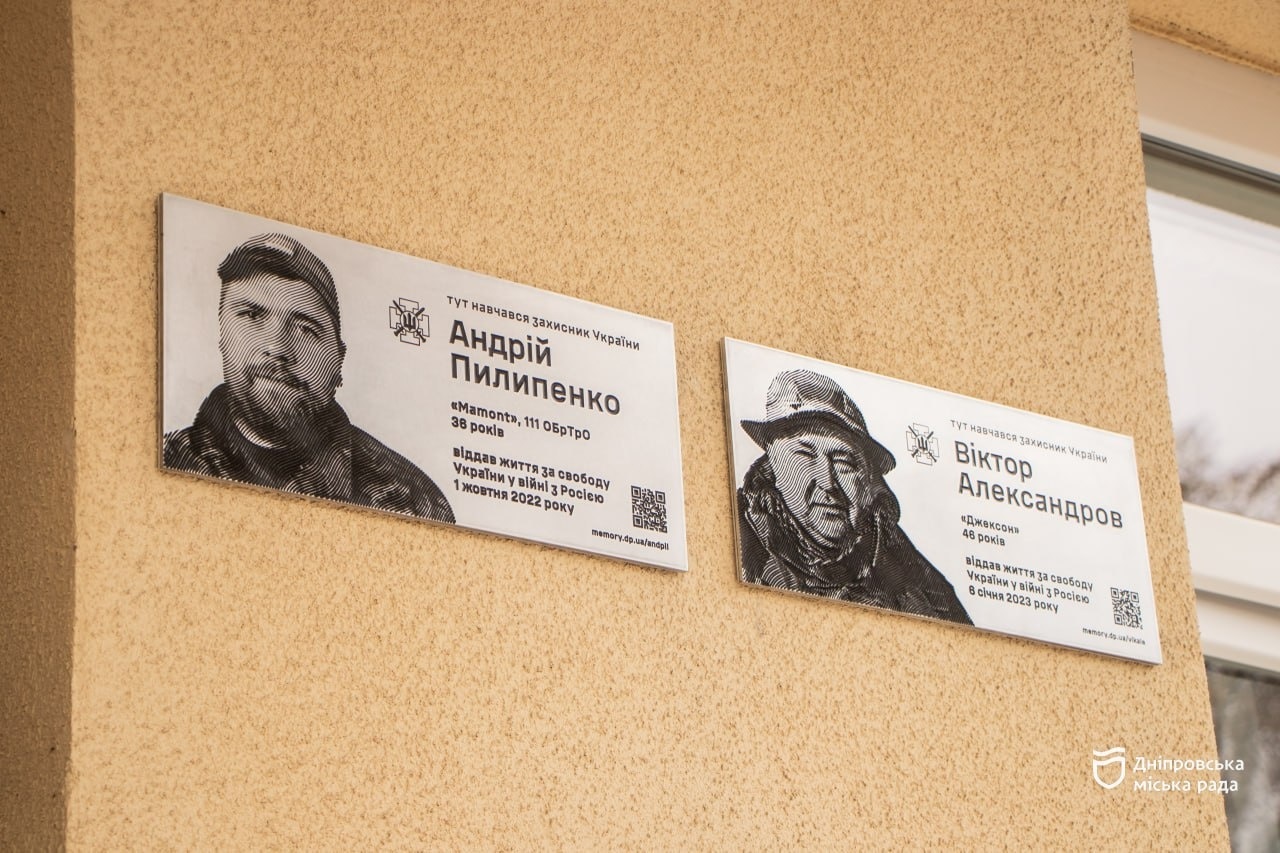 У Дніпрі на фасаді ліцею № 102 відкрили меморіальні дошки загиблим захисникам Віктору Александрову та Андрію Пилипенку