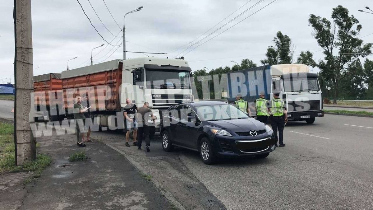 У Дніпрі на з’їзді з Кайдацького мосту вантажівка влетіла в Mazda