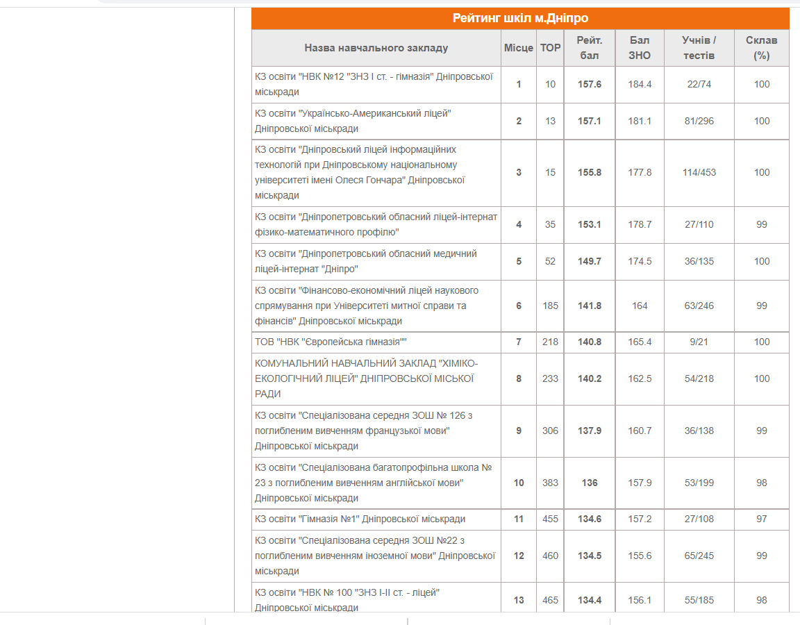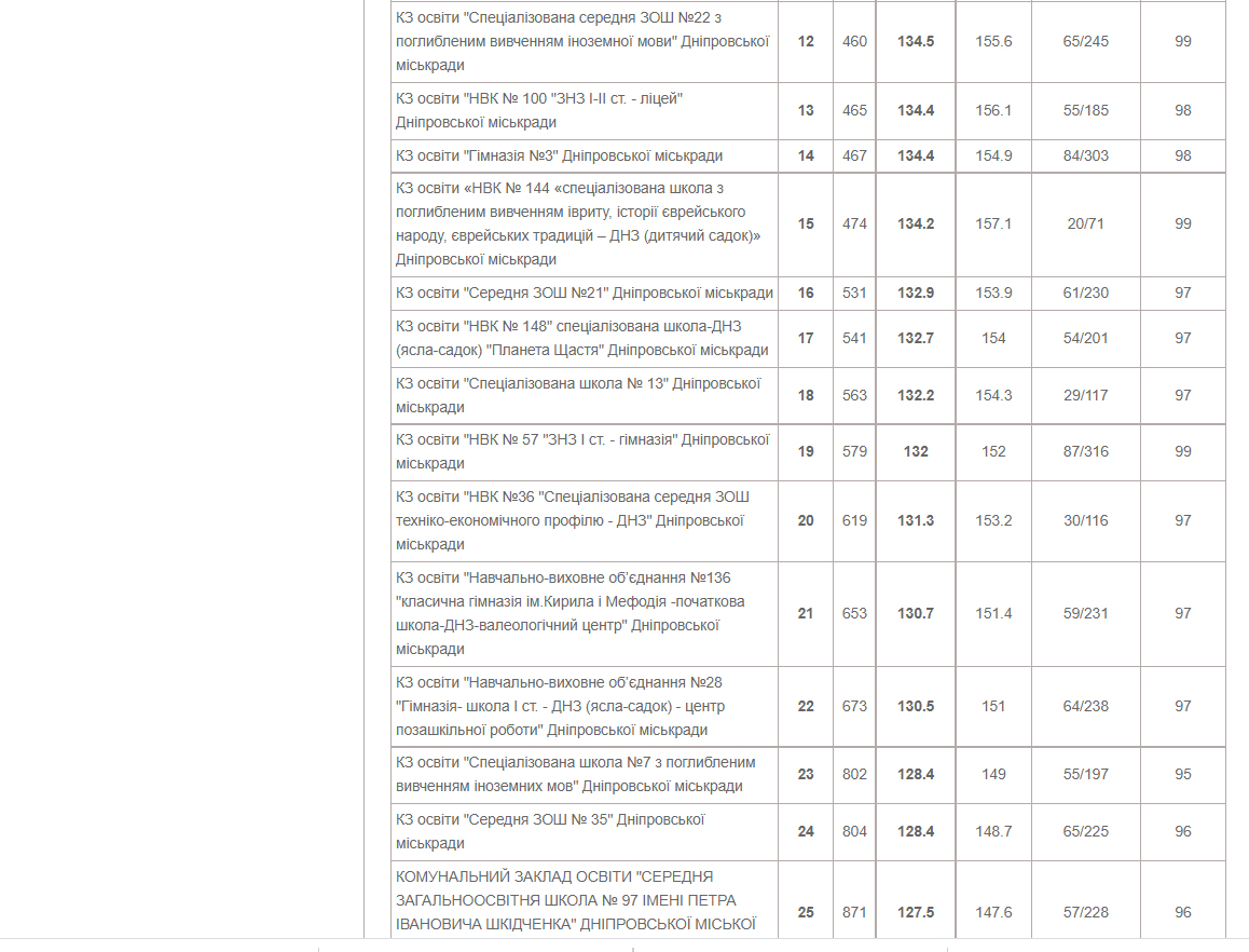 У Дніпрі оприлюднили рейтинг кращих шкіл за результатами ЗНО