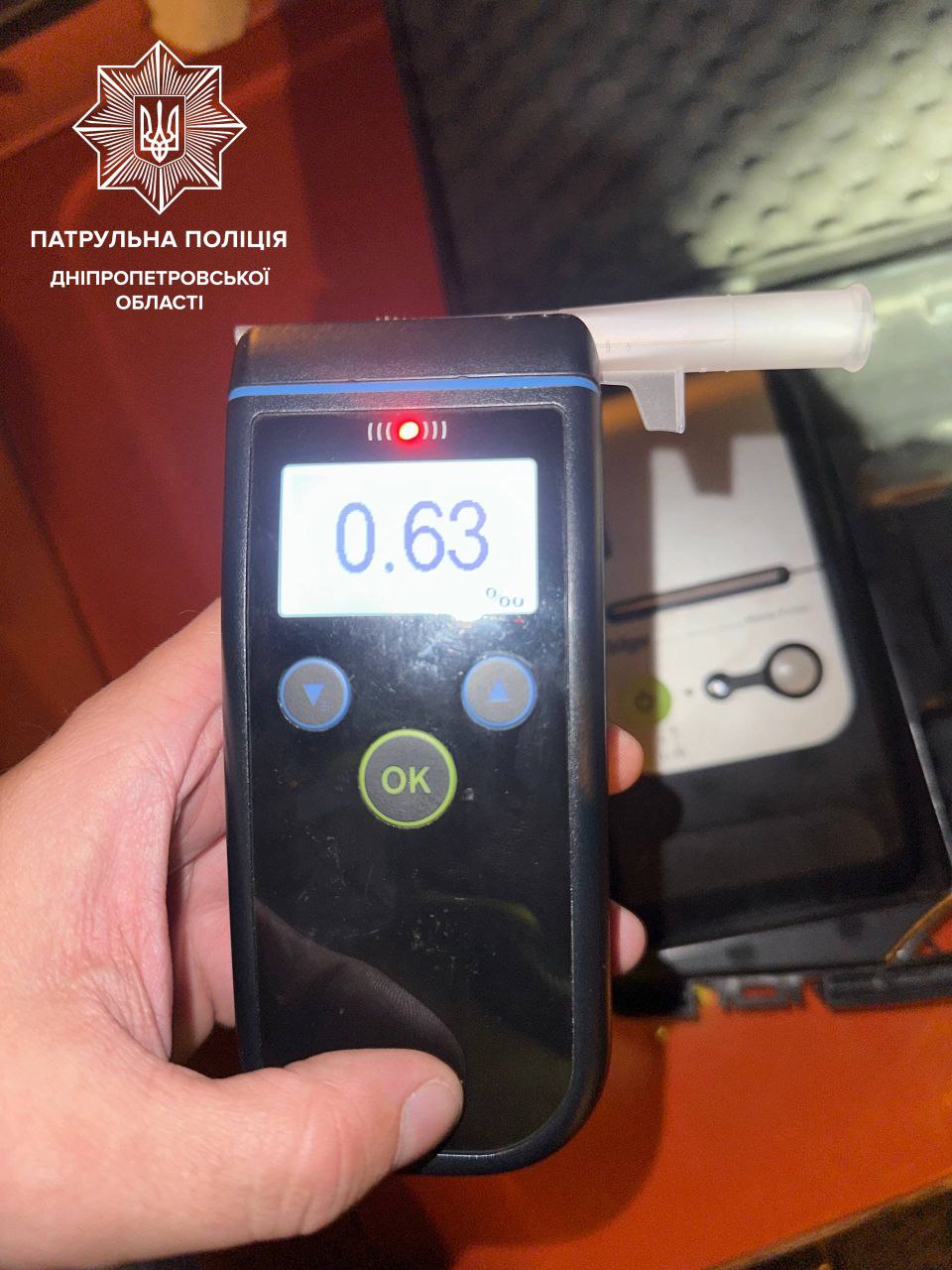 Зрештою поліцейським вдалося зупинити авто. За кермом виявився 17-річний юнак, який не мав водійського посвідчення. Він мав явні ознаки алкогольного сп’яніння. Перевірка на приладі «Драгер» підтвердила — у крові хлопця було 0,63 проміле алкоголю.