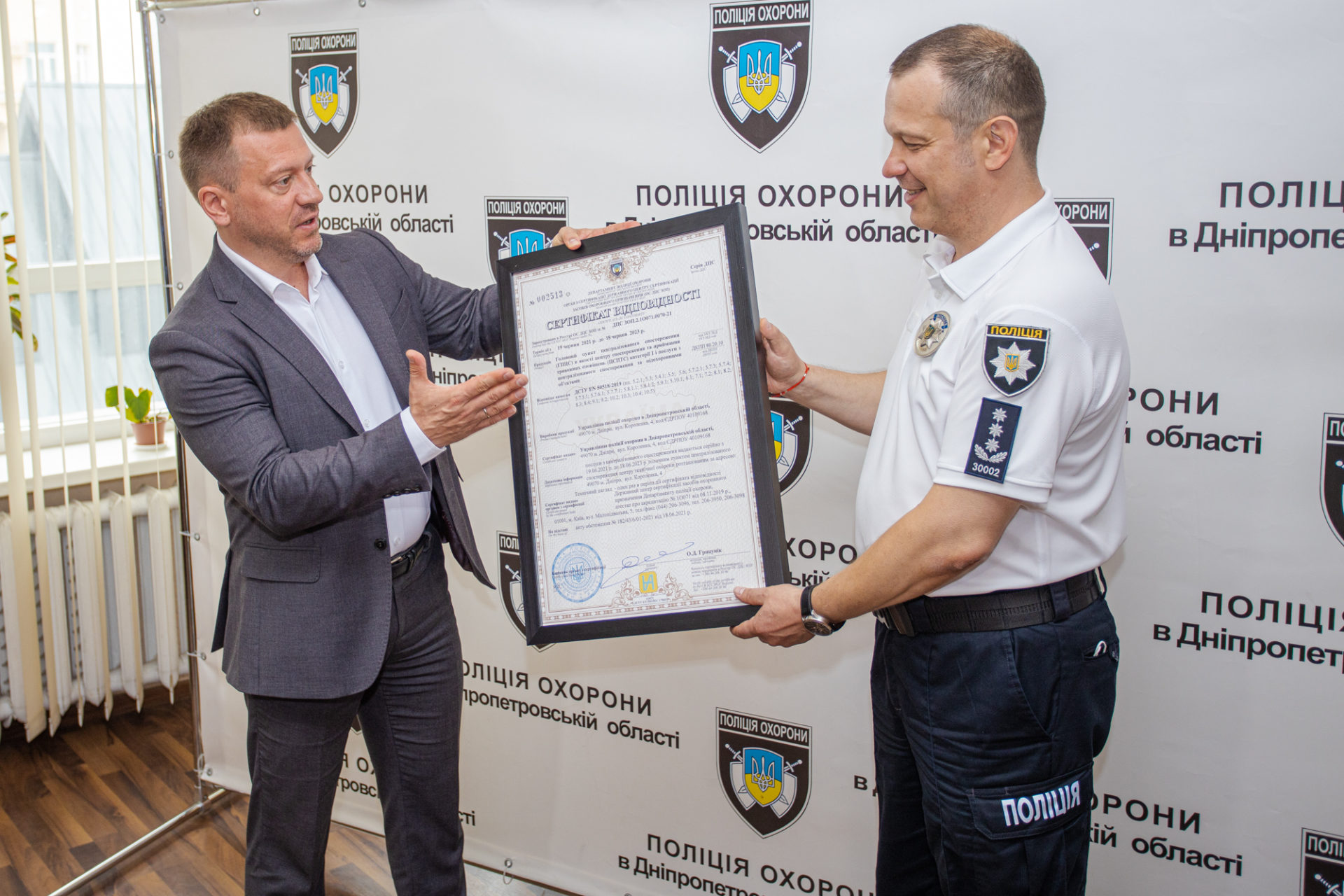 «Все, що я сьогодні побачив – вражає. Зроблена колосальна робота. З гордістю вручив сертифікат відповідності представникам управління поліції охорони Дніпропетровської області», – зазначив начальник департаменту поліції охорони України Сергій Парфенюк.