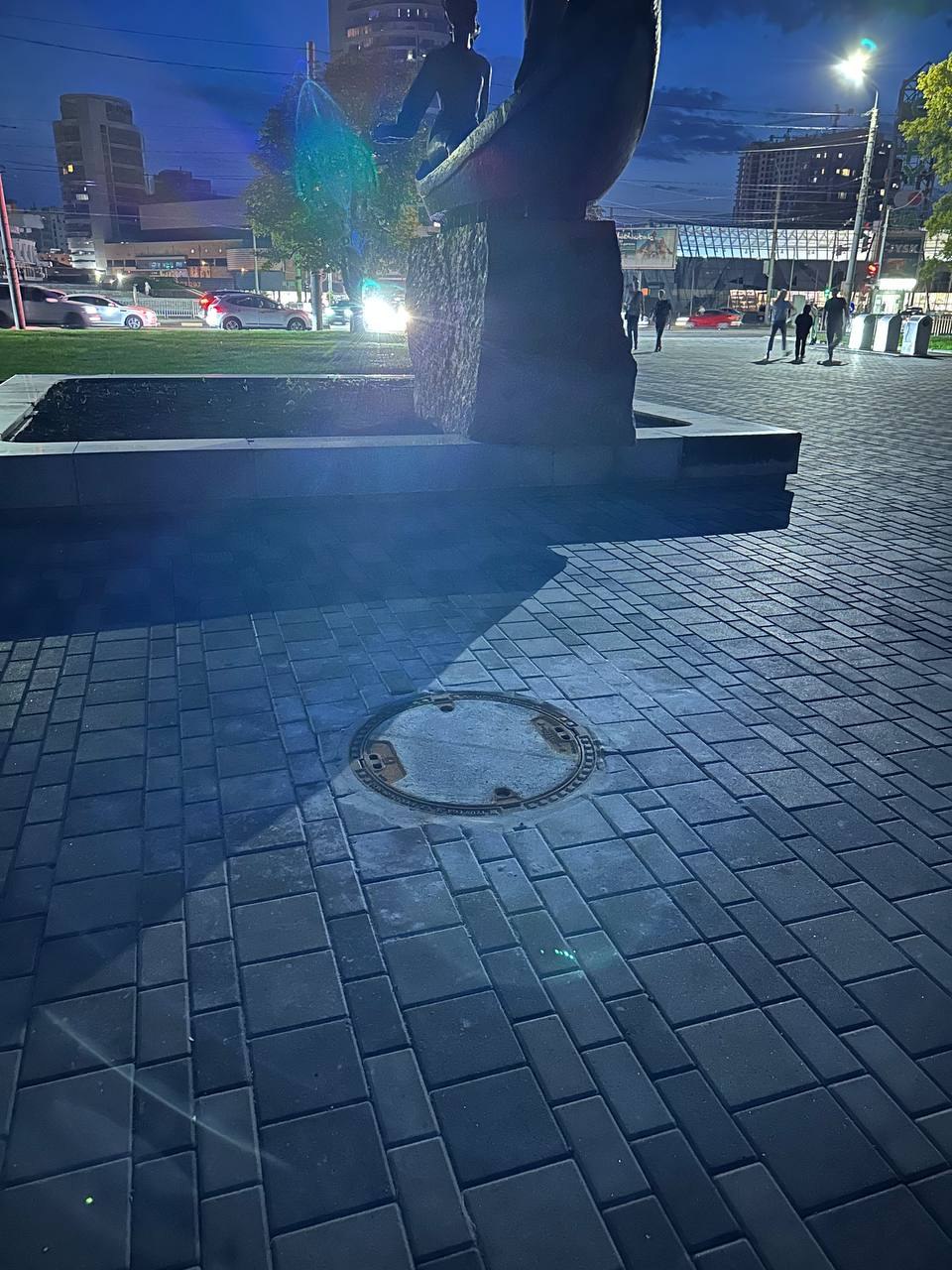 На Січеславській Набережній (скульптура «Юність Дніпра») замінили люк. Про відкритий колодязь біля скульптури повідомив у телеграм-чат Корбана – ТЧК дніпрянин Олег.