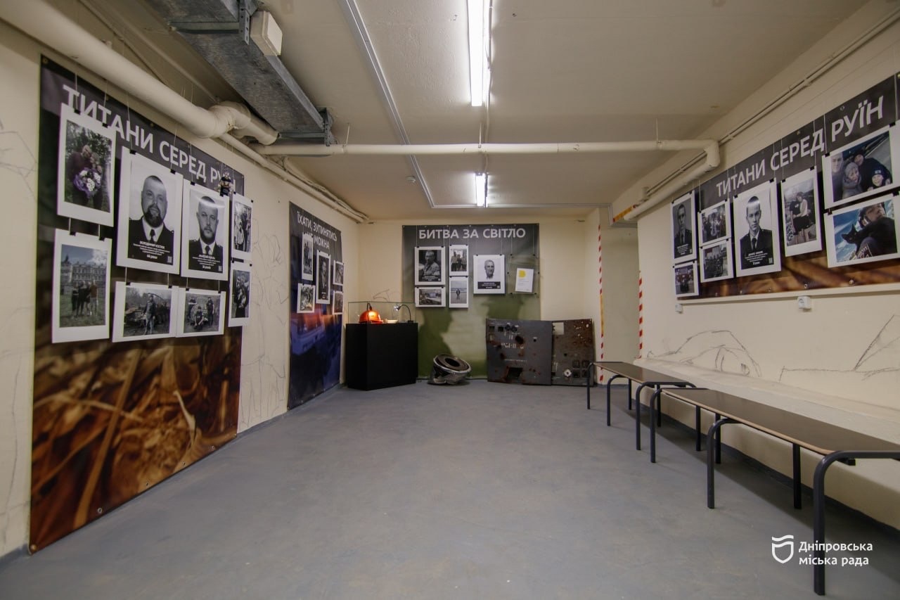 «Наше укриття розташоване у підвальному приміщенні історичної будівлі. З 2022 року ми адаптували його не лише як безпечний простір, а й як виставкову локацію. Тут реалізовано кілька проєктів, зокрема виставки, присвячені подіям повномасштабного вторгнення, роботі критичної інфраструктури та бойовому шляху 128-ї бригади», — зазначила директорка Музею історії Дніпра Олександра Бірюкова.