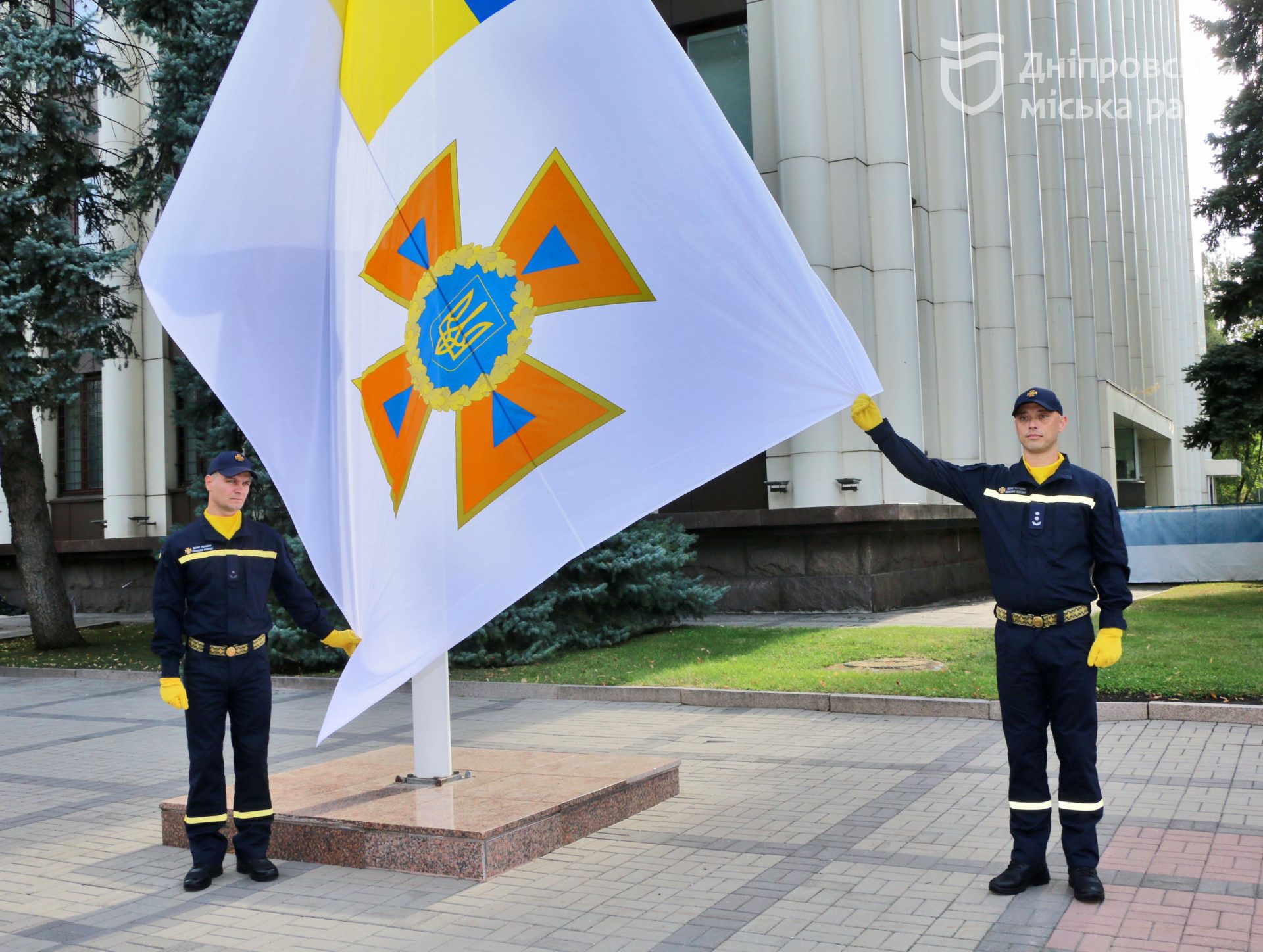 Зранку 17 вересня біля будівлі ДніпроОВА урочисто підняли стяг ДСНС — поряд із Державним прапором України. Хвилиною мовчання тут також вшанували памʼять героїв, які віддали життя за свободу країни та її людей.