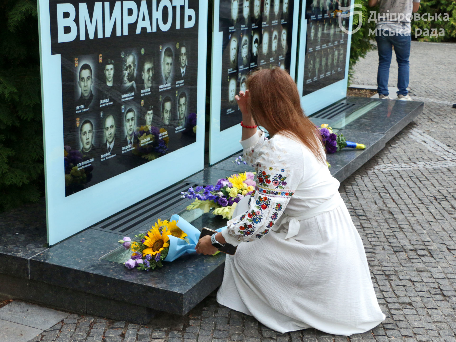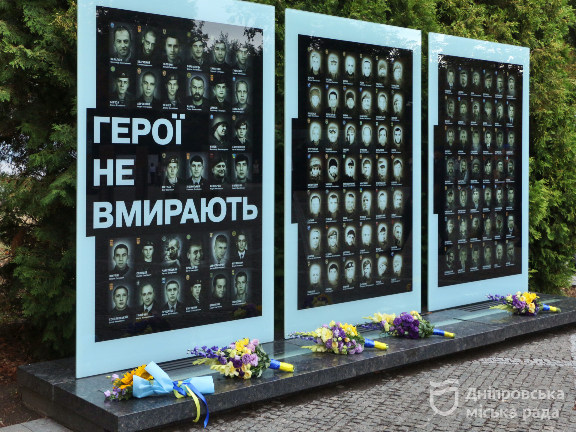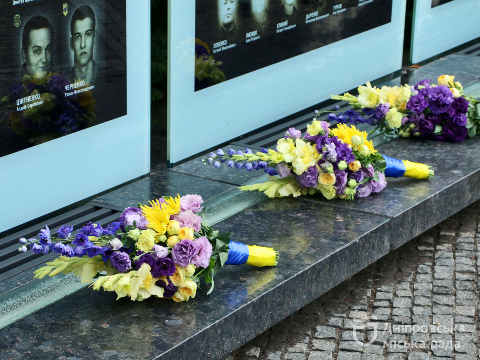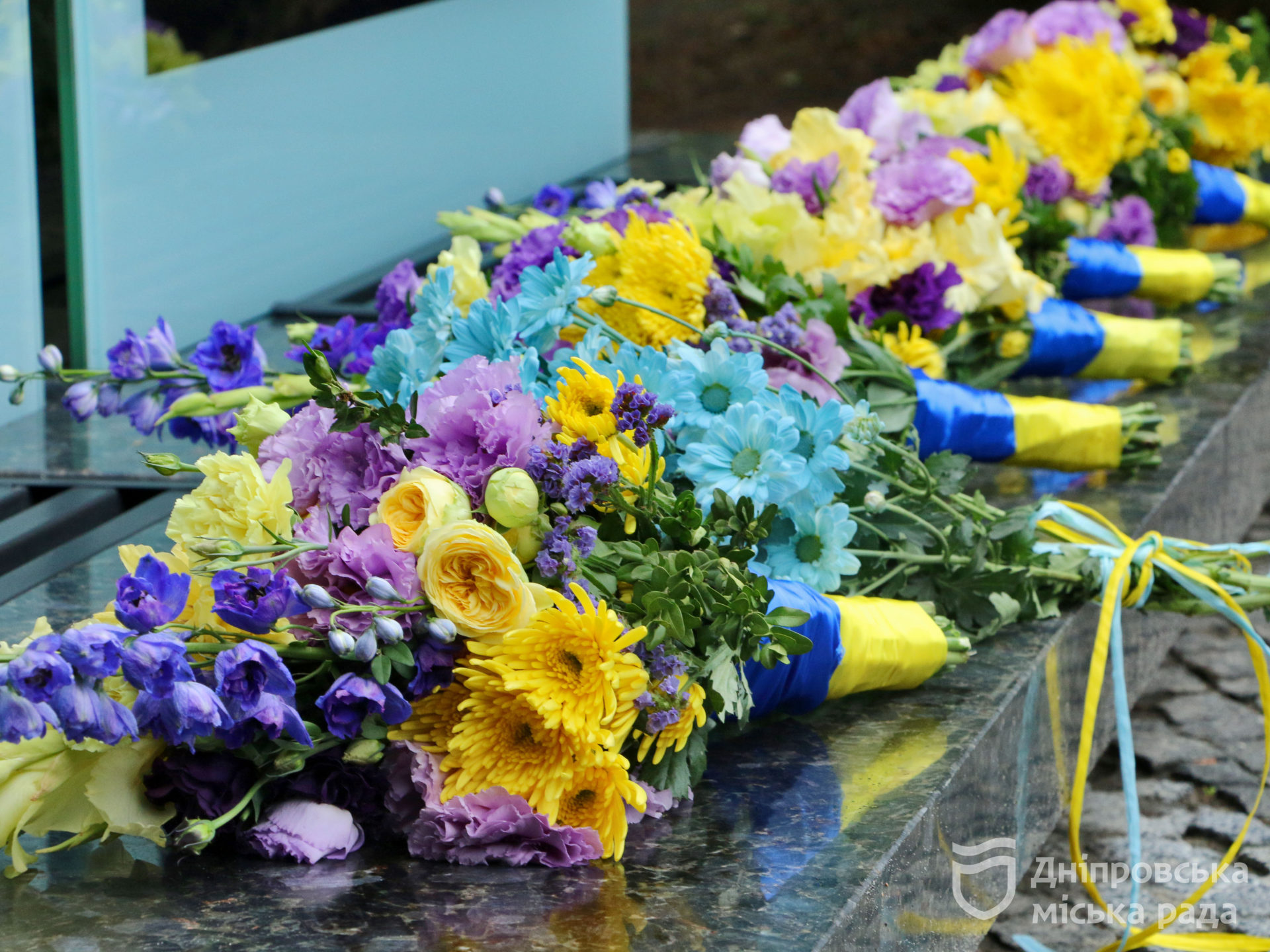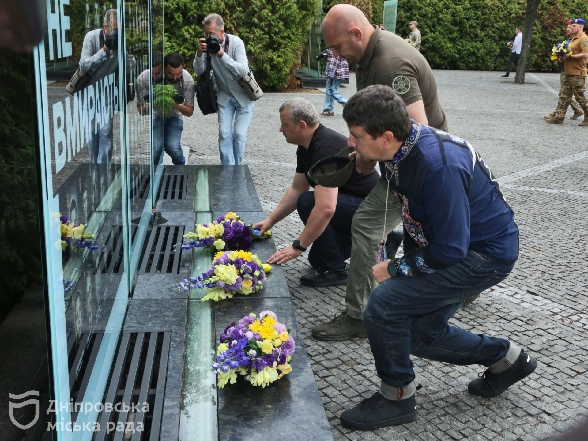 Дніпряни, військові, керівники міста та області, а також представники силового блоку поклали квіти до стел, де увічнено імена українських оборонців.