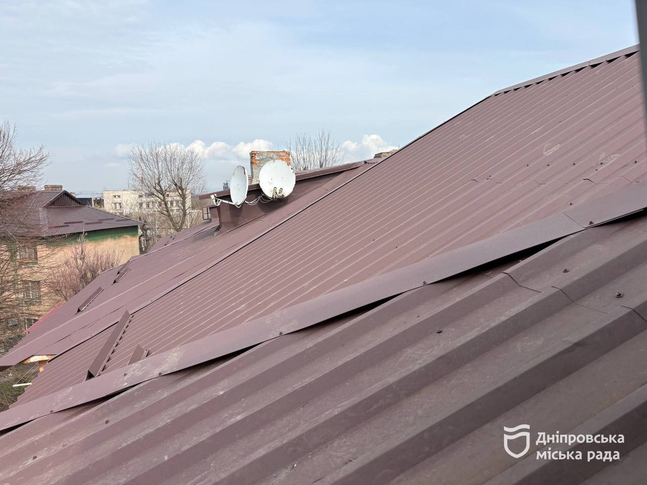 У Дніпрі відновили пошкоджену обстрілом покрівлю будинку ОСББ. Ремонт виконали коштом міста