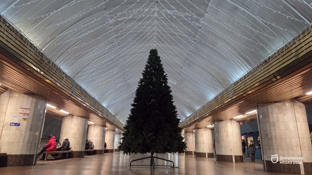 У Дніпрі триває підготовка до відкриття головної новорічної ялинки міста. Роботи зі святкового оформлення на станції метро «Вокзальна» розпочалися 16 грудня.