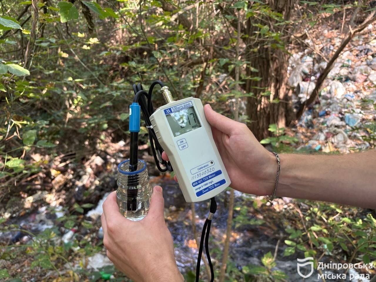 Також проби води взяли і в інших водоймах Новокодацького району. Серед них кар’єр на Безіменній висоті, що розташований на ж/м Діївка, та струмок в районі вулиці Криворізької. Безпосередньо на місці екологи перевірили рівень кислотності (pH) та мінералізації.
