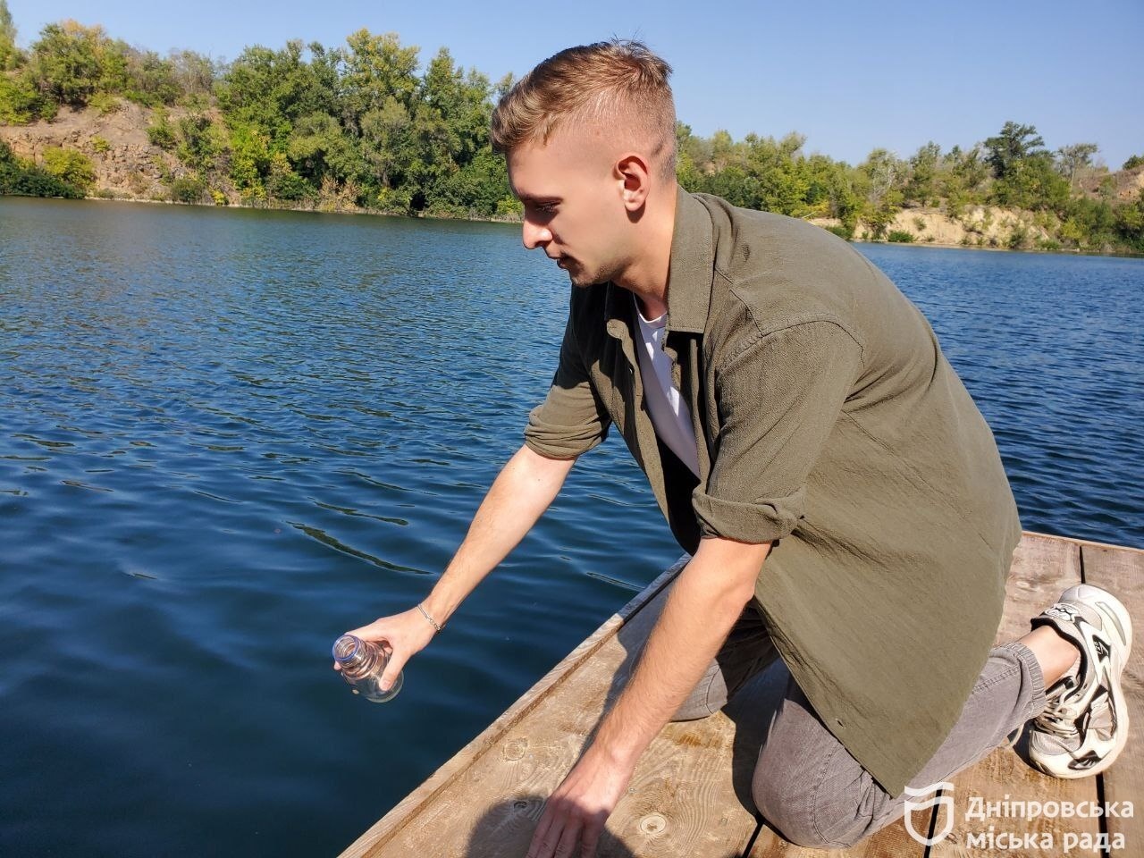 У Дніпрі перевіряють стан води у міських водоймах. Представники департаменту екологічної політики Дніпровської міської ради спільно з працівниками лабораторії Національного технічного університету «Дніпровська політехніка» взяли проби води в Новокодацькому районі, у так званому Таромському кар’єрі.