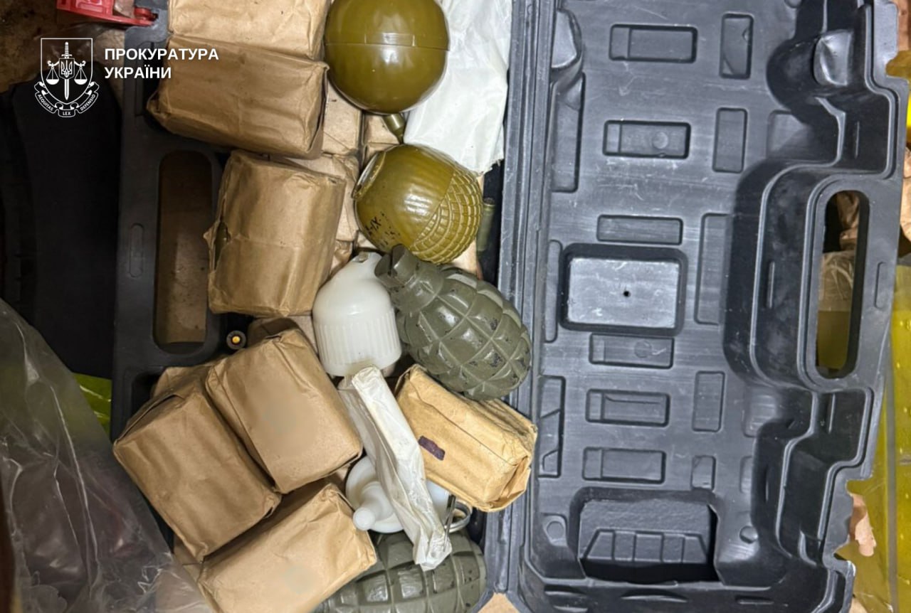 Під час обшуків за місцем проживання підозрюваних вилучено понад тисячу патронів, гранати та запали до них, тротилові і димові шашки, протипіхотну міну, детонатори та вогнепальну зброю.