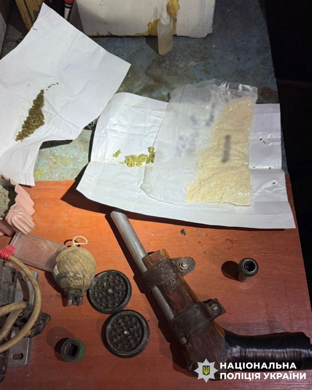 Один із чоловіків ховав зброю у траві біля будинку. У нього також знайшли майже кілограм марихуани та близько 100 грамів речовини, схожої на метамфетамін.