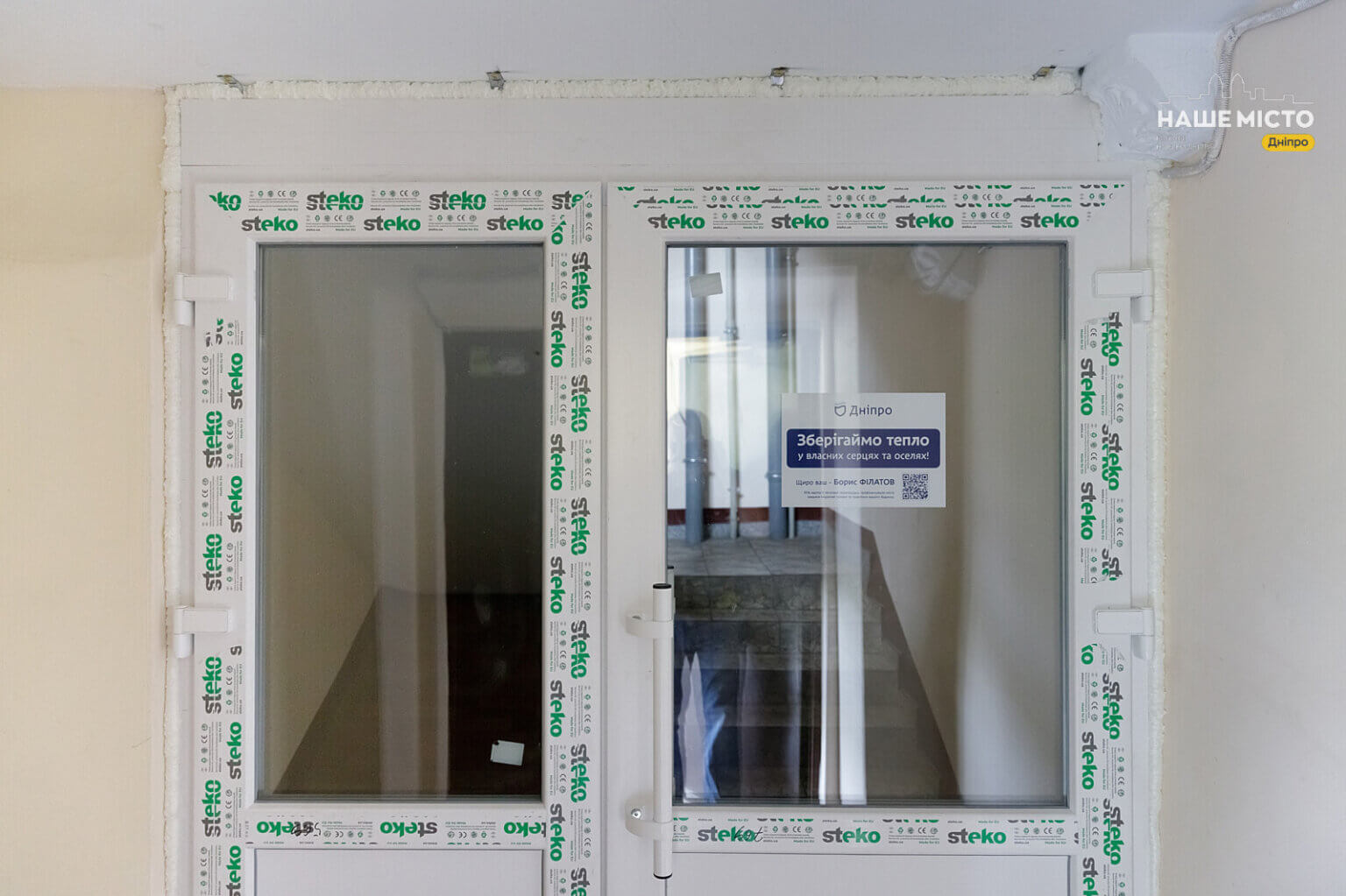 Для збереження тепла ОСББ встановило енергоощадні подвійні двері, металопластикові вікна на балконах загального користування на перших шести поверхах та утеплило частину стін. У планах — заміна вікон і на верхніх поверхах.
