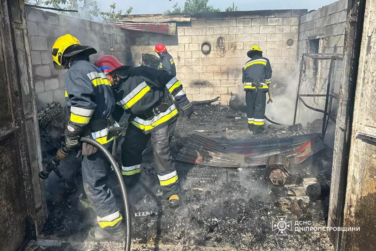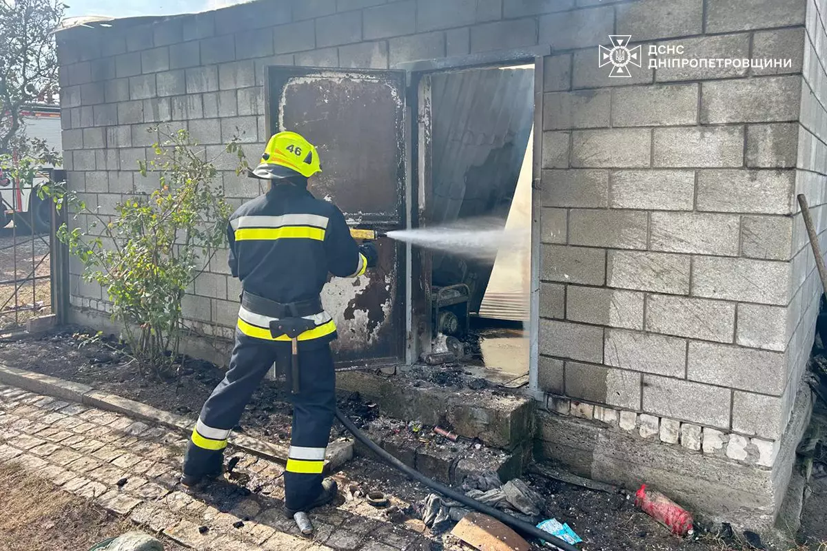 По прибуттю за викликом рятувальники встановили, що на території приватного домоволодіння зайнявся гаражний бокс на площі 20 кв.м.