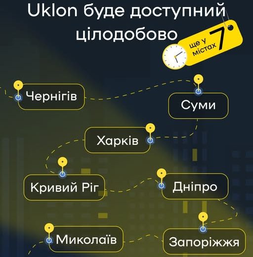 - Uklon переходить на цілодобову роботу, зокрема у Дніпрі та Кривому Розі