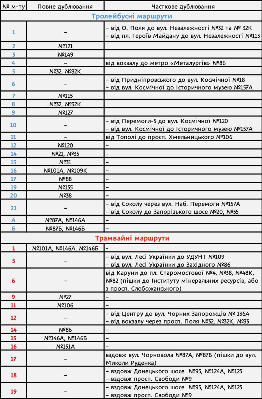 Водночас, щоб мінімізувати незручності для пасажирів, у місті планують максимально посилити дублюючі автобусні маршрути, які курсують паралельно з електротранспортом.