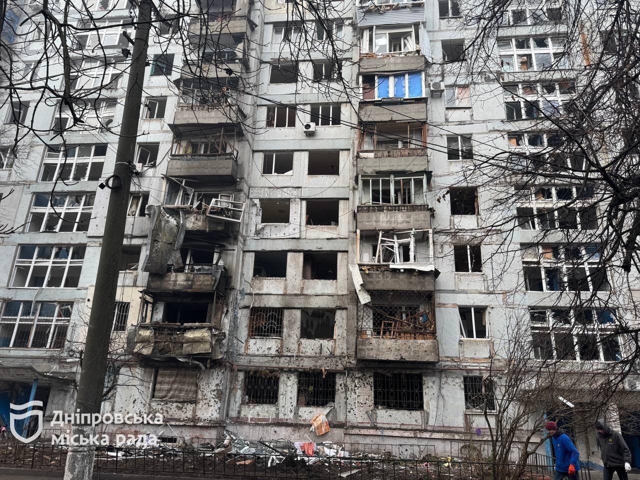 «Поруч зі мною — два будинки ОСББ, які зазнали значних пошкоджень. У 9-поверхівці вибито 24 великі вікна у місцях загального користування та понад 115 вікон у квартирах. Також пошкоджені вхідні групи у під’їздах і зафіксована аварійна ситуація з балконними плитами з першого по четвертий поверх у двох під’їздах. У сусідньому 5-поверховому будинку, пошкоджено 8 вікон у місцях загального користування та понад 80 у квартирах. Наші спеціалісти працюють на місці, щоб уточнити остаточні масштаби руйнувань. Інформацію щодо відселення мешканців ще уточнюємо», – повідомив директор департаменту з питань самоорганізації населення Дніпровської міської ради Святослав Ткаченко.