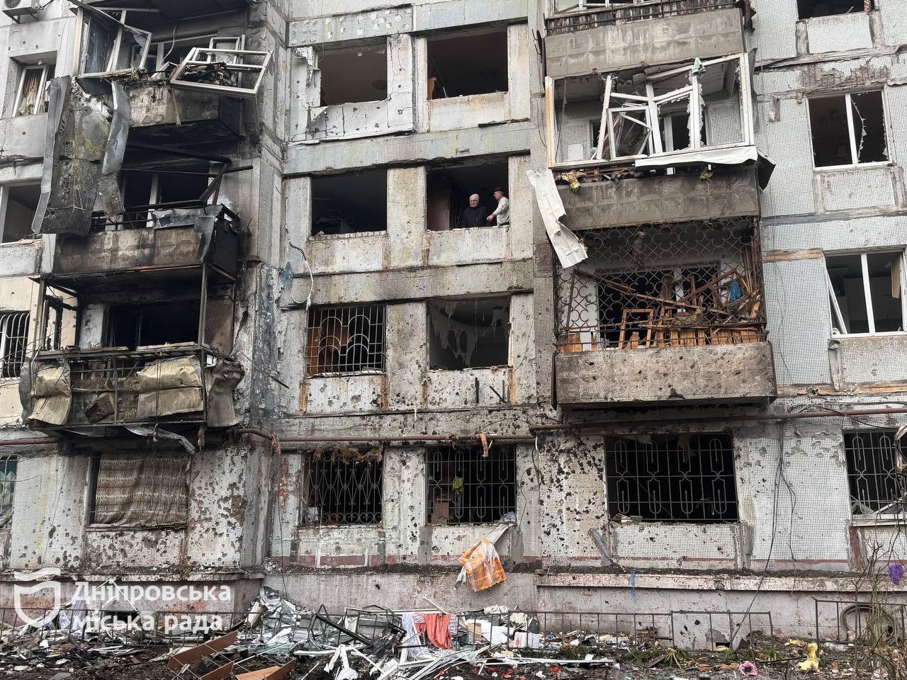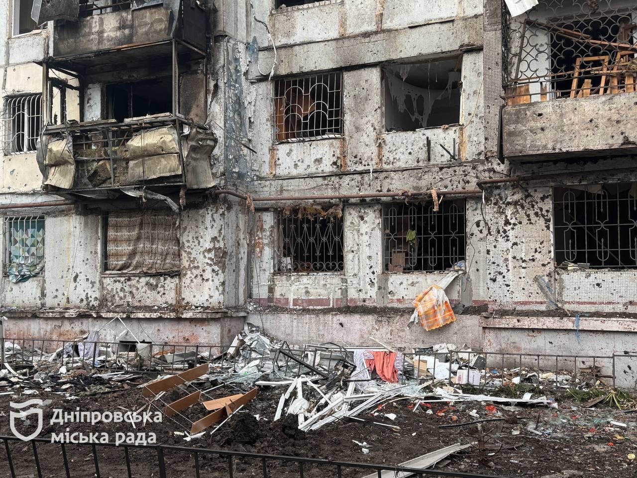 «Поруч зі мною — два будинки ОСББ, які зазнали значних пошкоджень. У 9-поверхівці вибито 24 великі вікна у місцях загального користування та понад 115 вікон у квартирах. Також пошкоджені вхідні групи у під’їздах і зафіксована аварійна ситуація з балконними плитами з першого по четвертий поверх у двох під’їздах. У сусідньому 5-поверховому будинку, пошкоджено 8 вікон у місцях загального користування та понад 80 у квартирах. Наші спеціалісти працюють на місці, щоб уточнити остаточні масштаби руйнувань. Інформацію щодо відселення мешканців ще уточнюємо», – повідомив директор департаменту з питань самоорганізації населення Дніпровської міської ради Святослав Ткаченко.