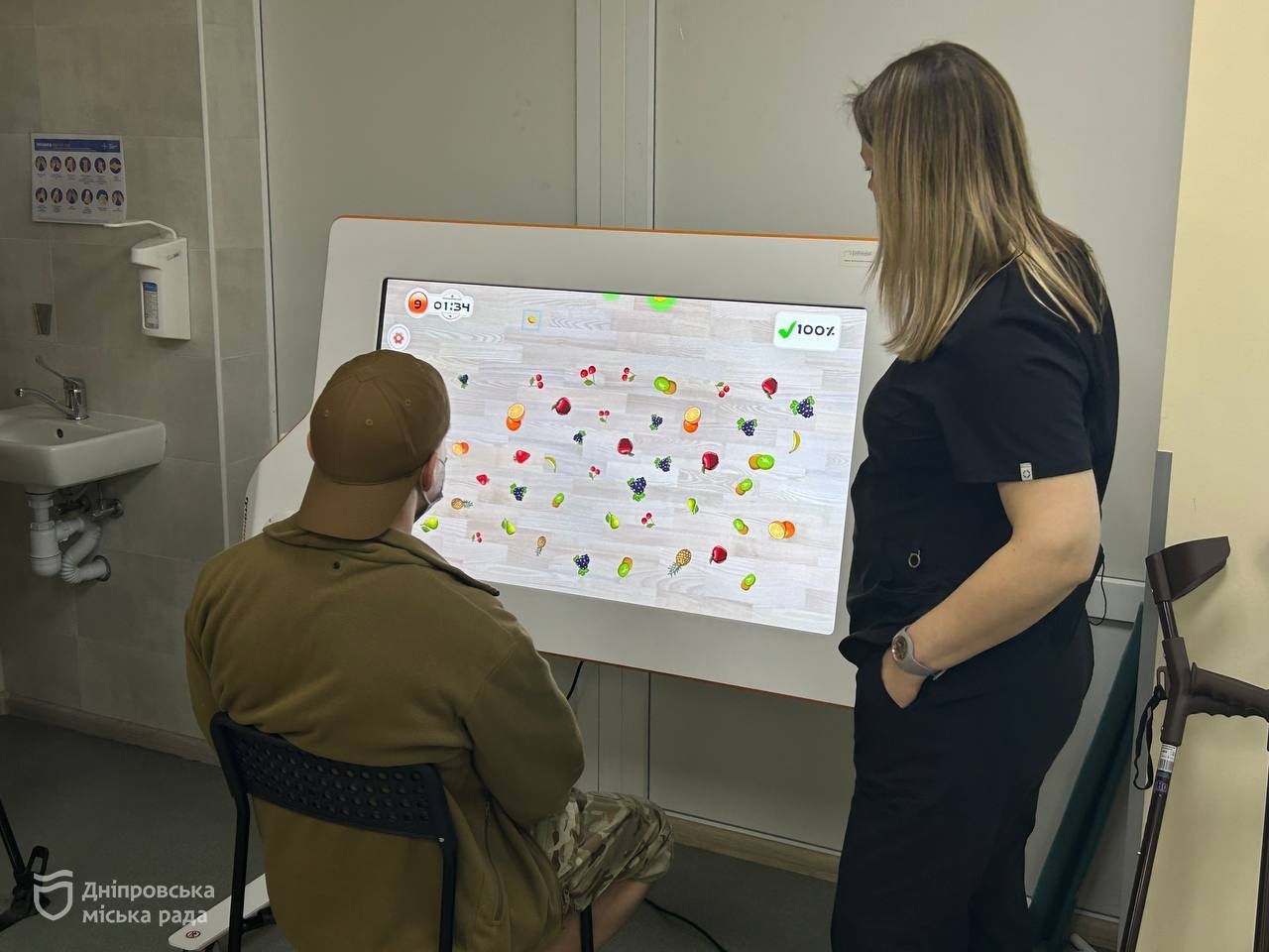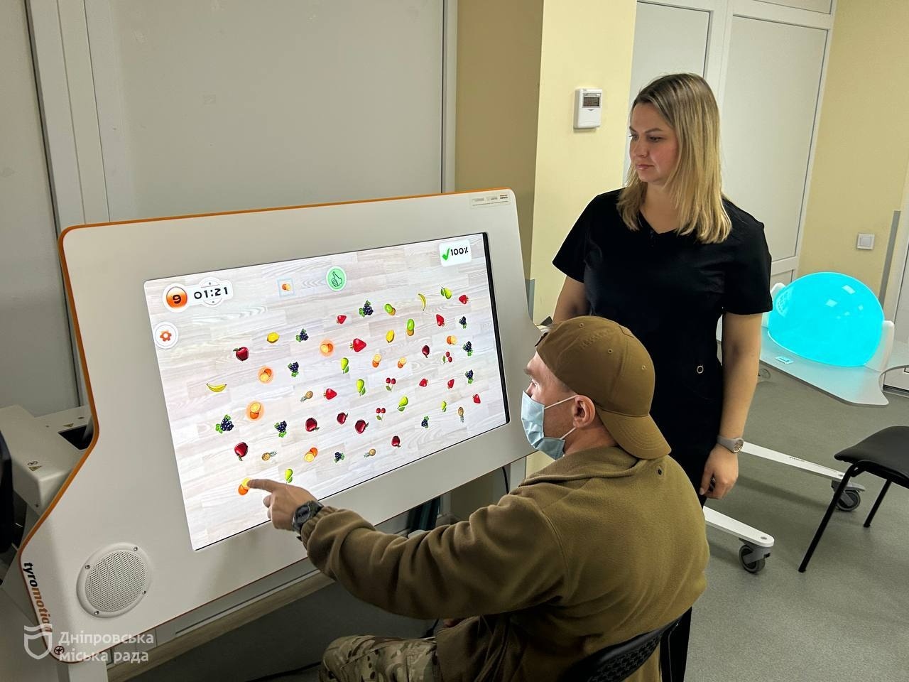 «Микола надійшов із наслідками закритої черепно-мозкової травми: він мав порушення пам’яті, уваги та зорово-просторової орієнтації, через що міг заблукати навіть у палаті. Ми застосували комплексний підхід — роботизовану терапію Tyromotion і Nirvana для відновлення когнітивних функцій, а також ігрові методики для повернення мовлення. Важливою частиною стала робота з психологом над орієнтацією в просторі та впровадження «карти дня» для самостійного планування графіка. Зараз Микола вже ходить без милиць, вільно пересувається лікарнею та показує значний прогрес у спілкуванні — він вмотивований, адже бачить реальні результати своєї праці», — прокоментувала старша ерготерапевтка Анна.