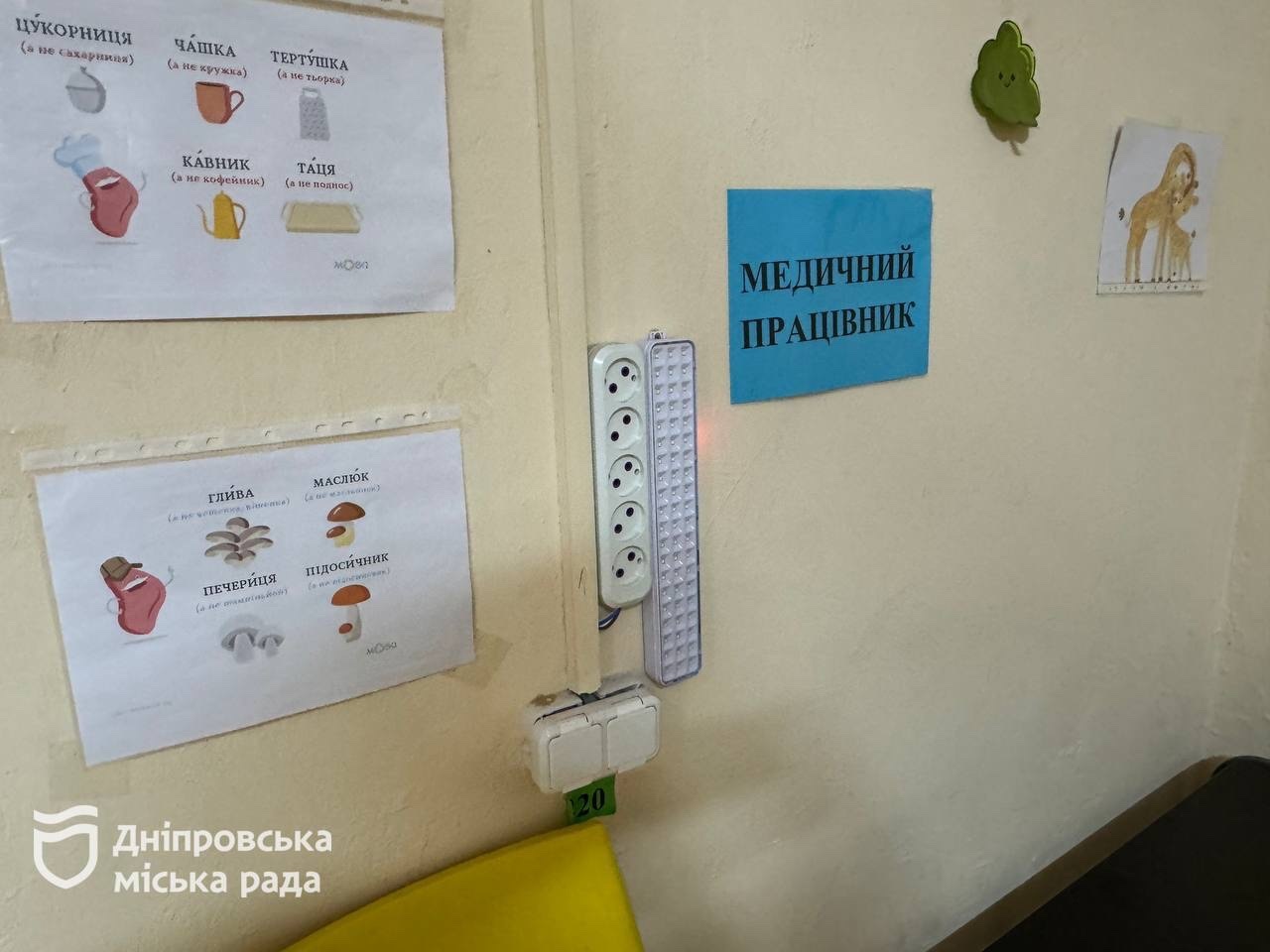 «Пункт незламності розрахований на 455 осіб, включаючи учасників освітнього процесу та жителів району. Є окремі кімнати для тих, хто може прийти з домашніми тваринами, а також зони для матусь із дітьми, де є іграшки та засоби гігієни. Укриття облаштоване шанцевим інструментом, санвузлами, вентиляцією, медичним куточком і має два запасні виходи. Тут можна випити гарячого чаю, підзарядити гаджети та підключитися до Wi-Fi. У разі відсутності світла працює генератор», – розповів Юр’єв.