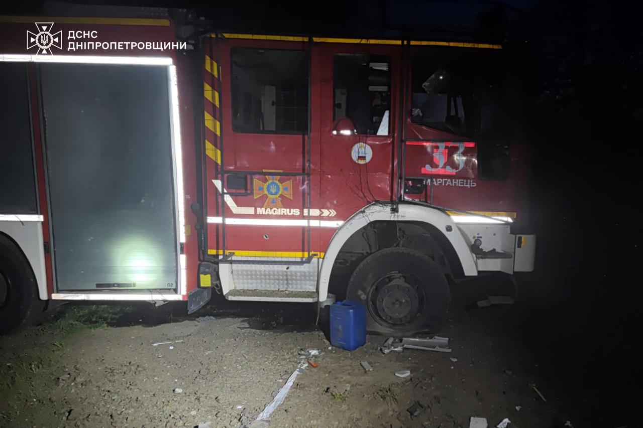 Ворожий дрон вдарив по рятувальниках у Марганці: пошкоджено депо та техніку