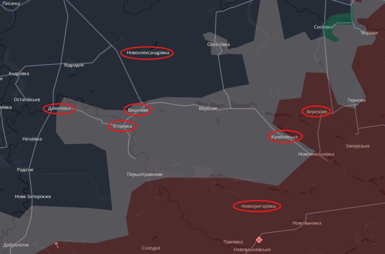 Також триває поступове проникнення у райони Калинівського та Березового. Українські військові місцями підходять майже до адміністративного кордону із Запорізькою областю, де розташована Новогригорівка. Водночас наразі це більше схоже на розвідку боєм — перевіряється щільність оборони противника, наявність резервів та реакція на маневри.