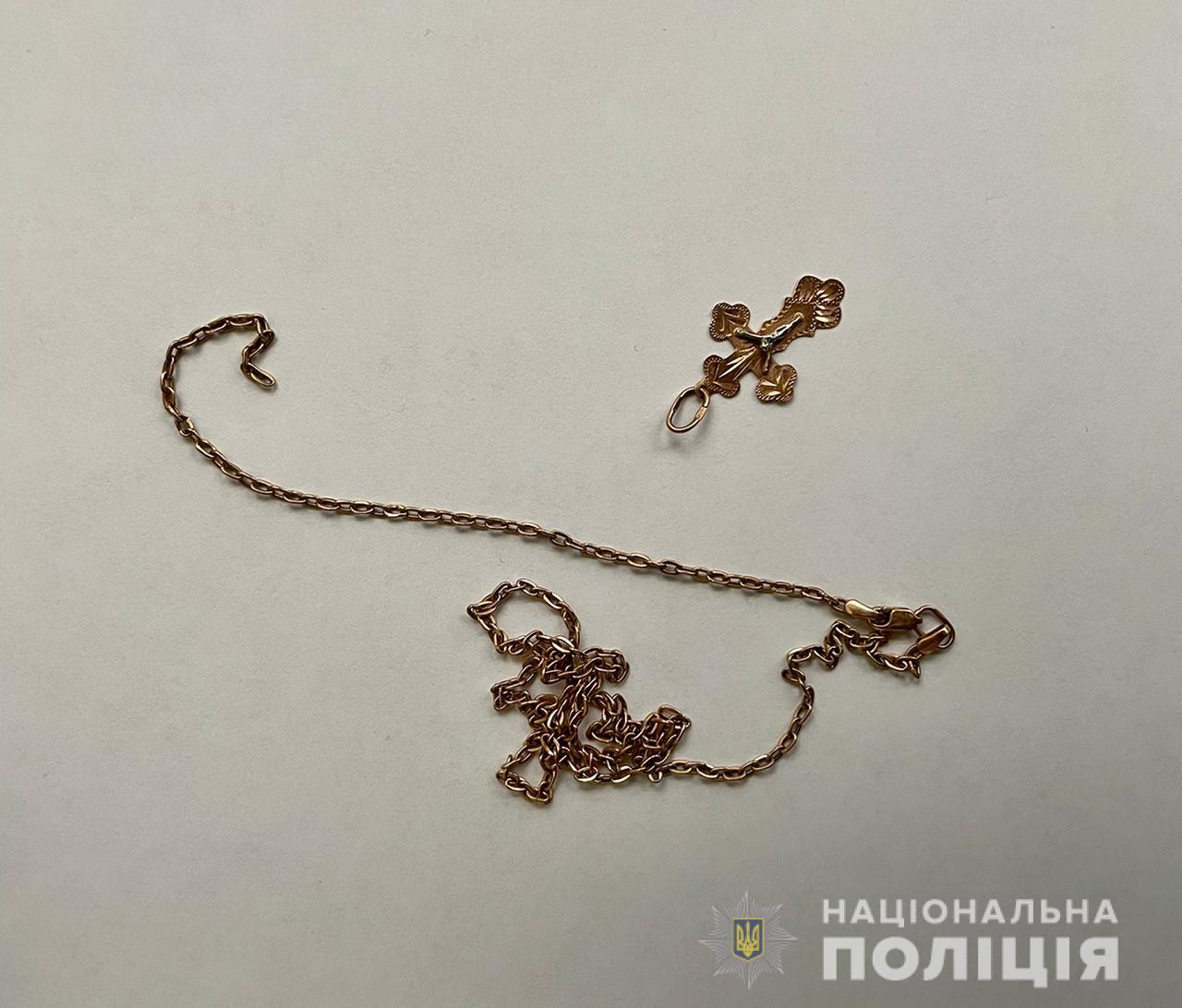 Зловмисник вдарив 25-річну потерпілу по спині й зірвав з шиї золотий ланцюжок, після чого втік з місця злочину. Про це повідомляє ГУНП в Дніпропетровській...